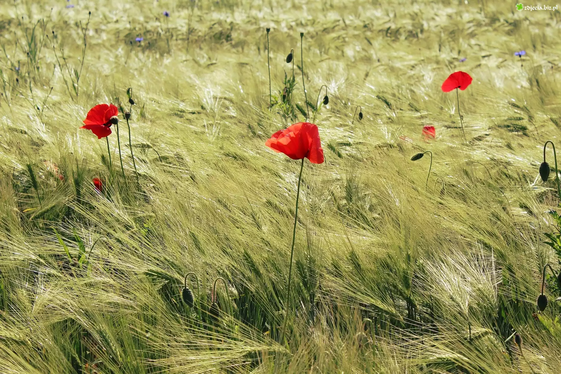 Zdjęcie Pole, Zboża, Czerwone, Maki, Lato