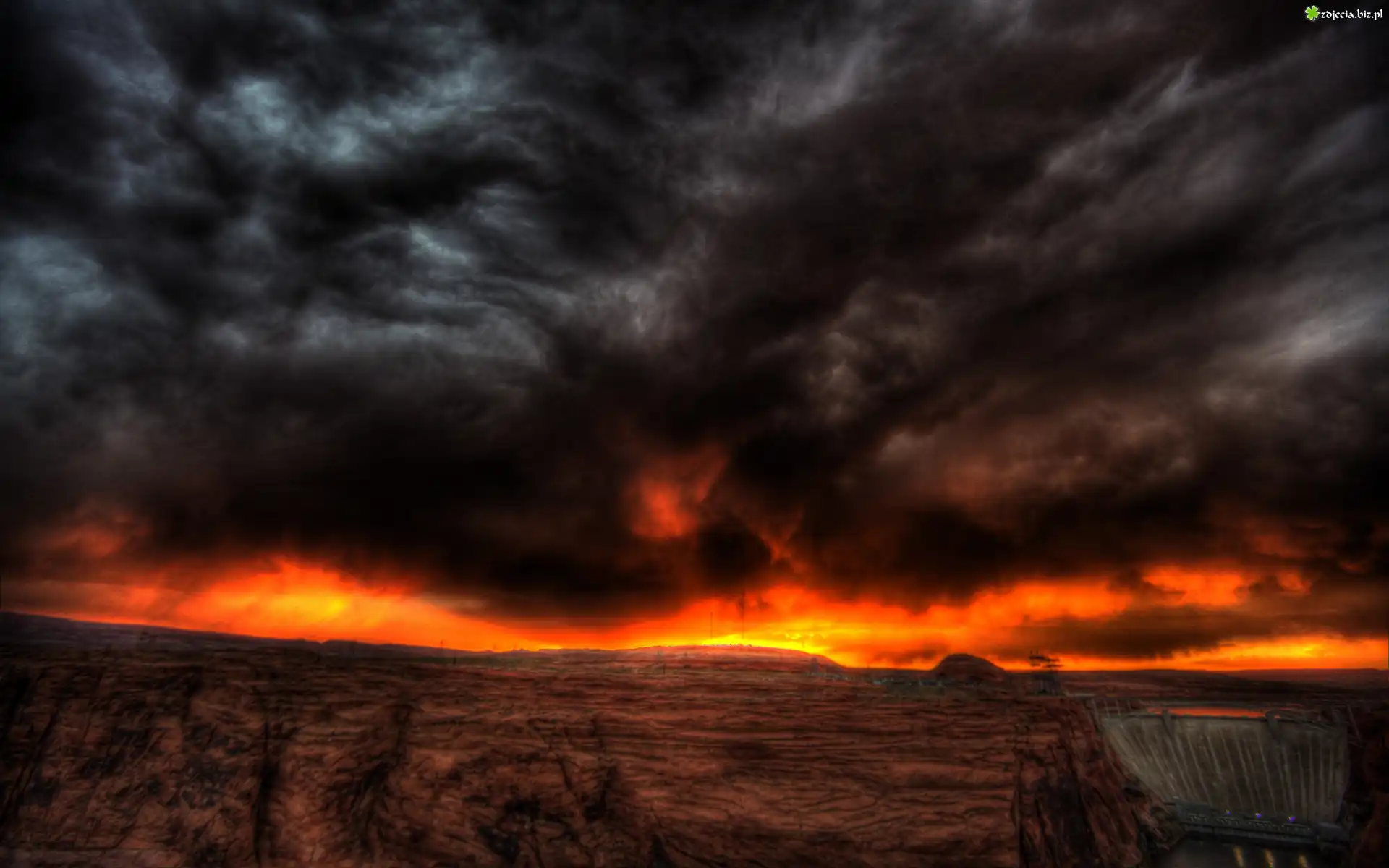 Zdjęcie Pole, Ciemne, Płonące, Niebo