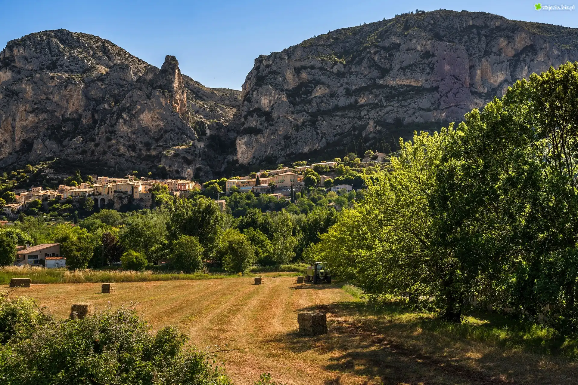 Zdjęcie Francja, Moustiers-Sainte-Marie, Góry, Alpy, Dolina, Ciągnik, Pole