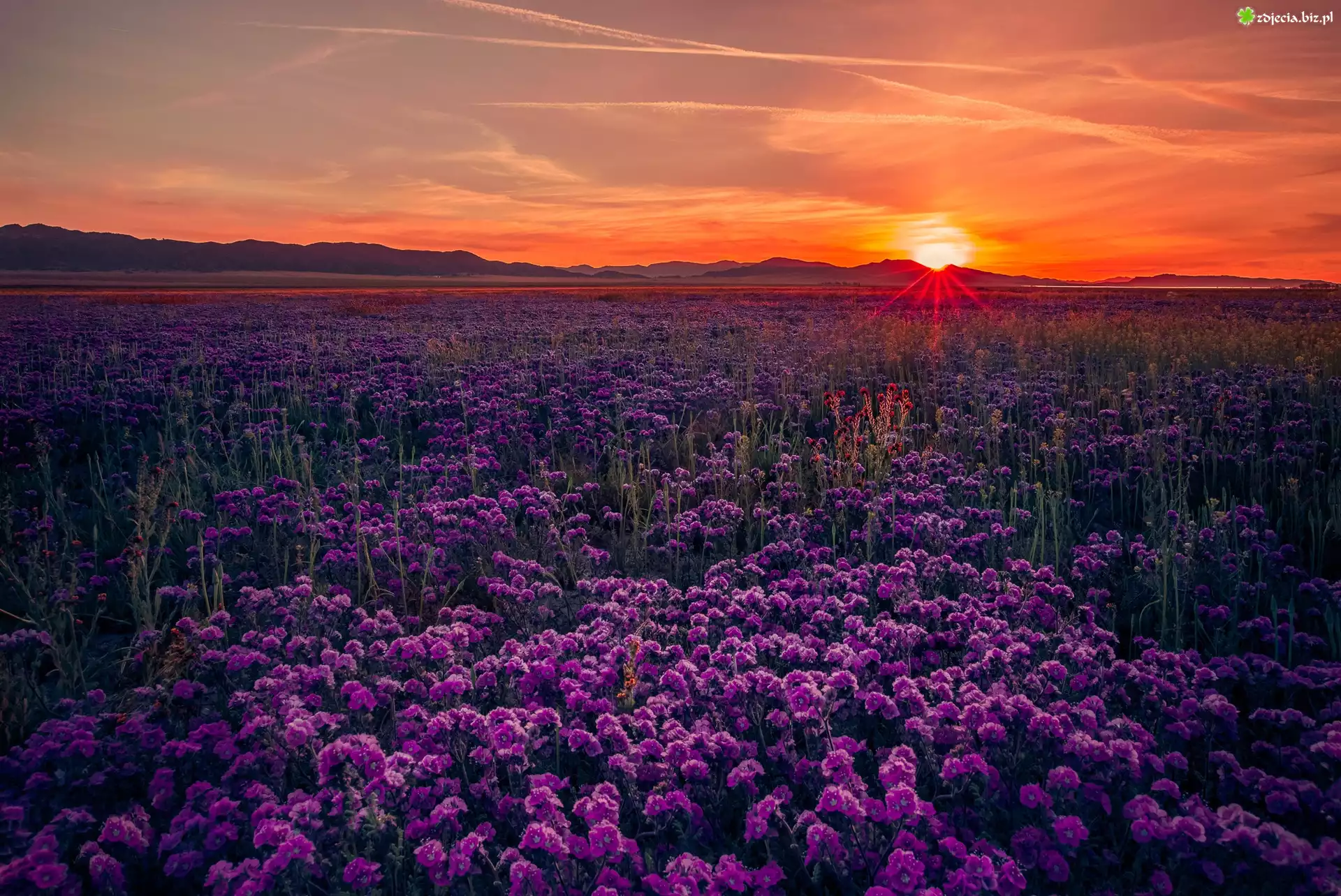 Zdjęcie, Pole, Kwiaty, Zachód, Słońca