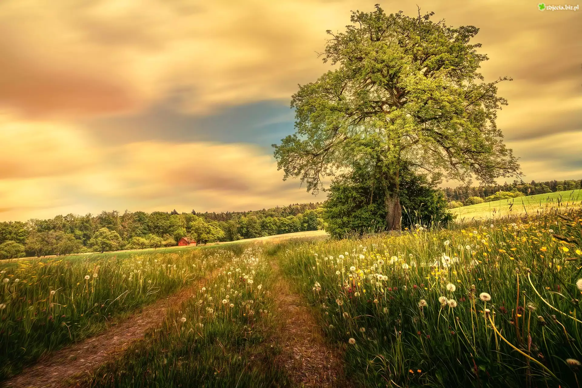 Zdjęcie, Polna Droga, Łąki, Drzewo