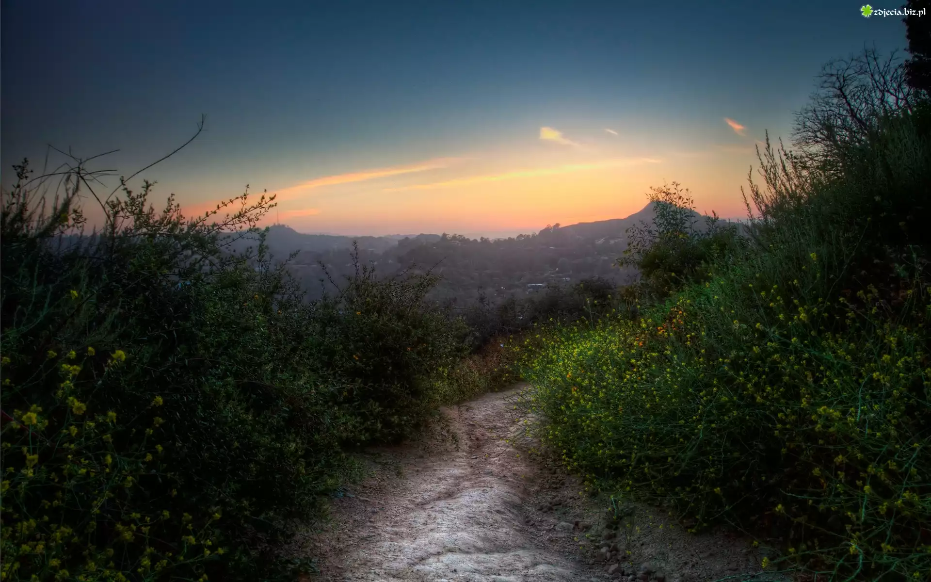 Zdjęcie Polna, Dróżka, Krzewy, Niebo