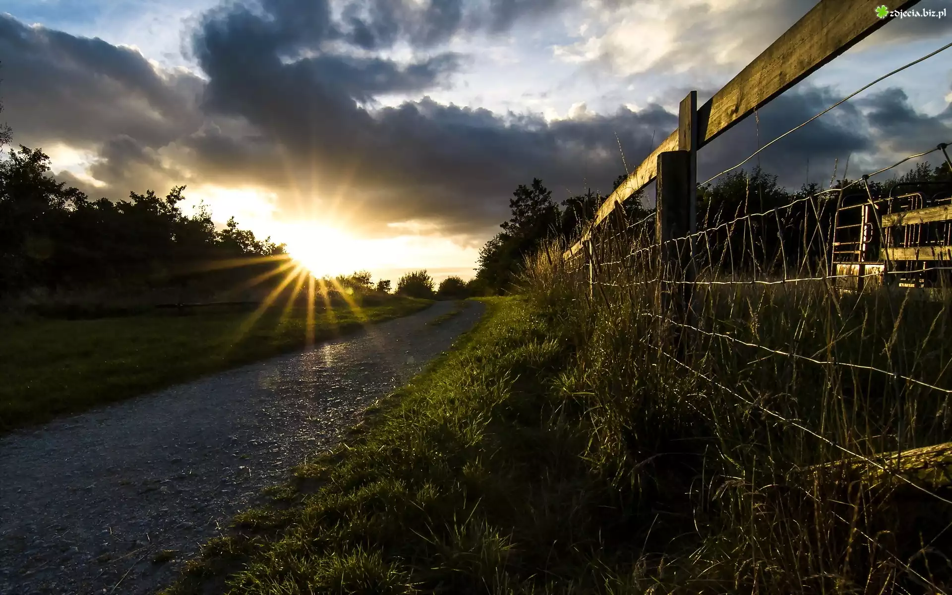 Zdjęcie Polna, Droga, Ogrodzenie, Wschód Słońca