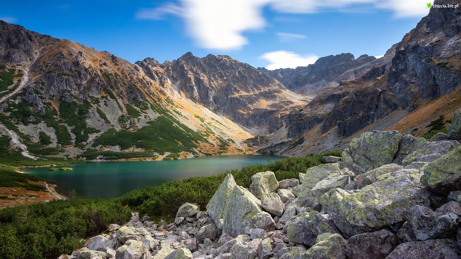 Zdjęcie Polska, Tatrzański Park Narodowy, Góry, Tatry, Jezioro, Czarny Staw pod Rysami, Skały, Kamienie |
