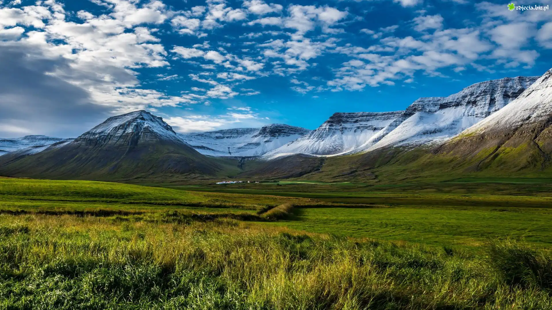 Zdjęcie Islandia, Półwysep Westfjords, Góry, Łąki, Pola, Chmury
