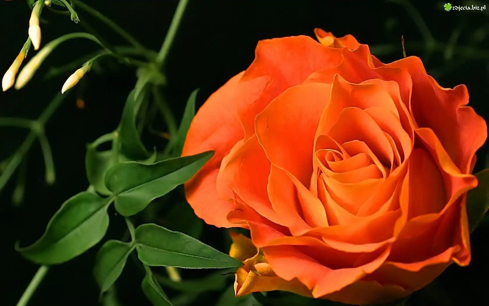 Zdjęcie Pomarańczowa, Róża, Zielone, Listki