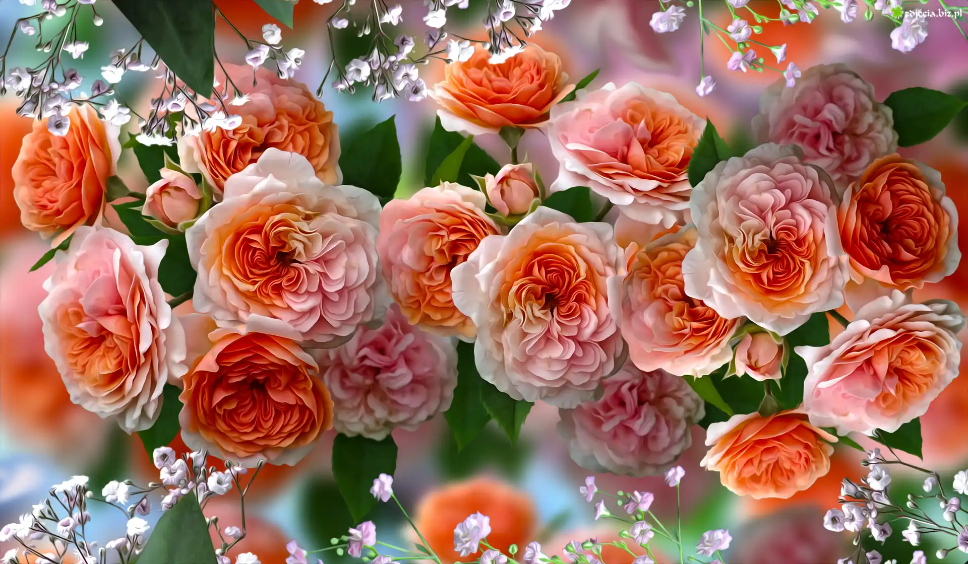 Zdjęcie Pomarańczowo-różowe, Róże, Grafika