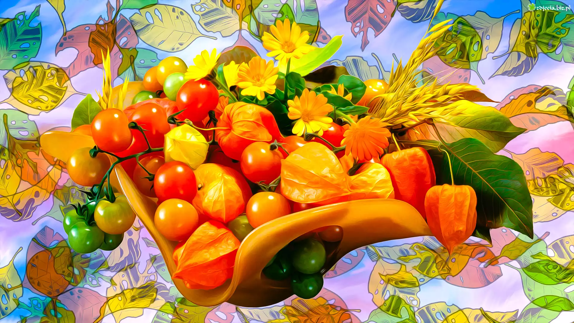 Zdjęcie Pomidory, Miechunka, Kwiaty, Kłosy, Grafika
