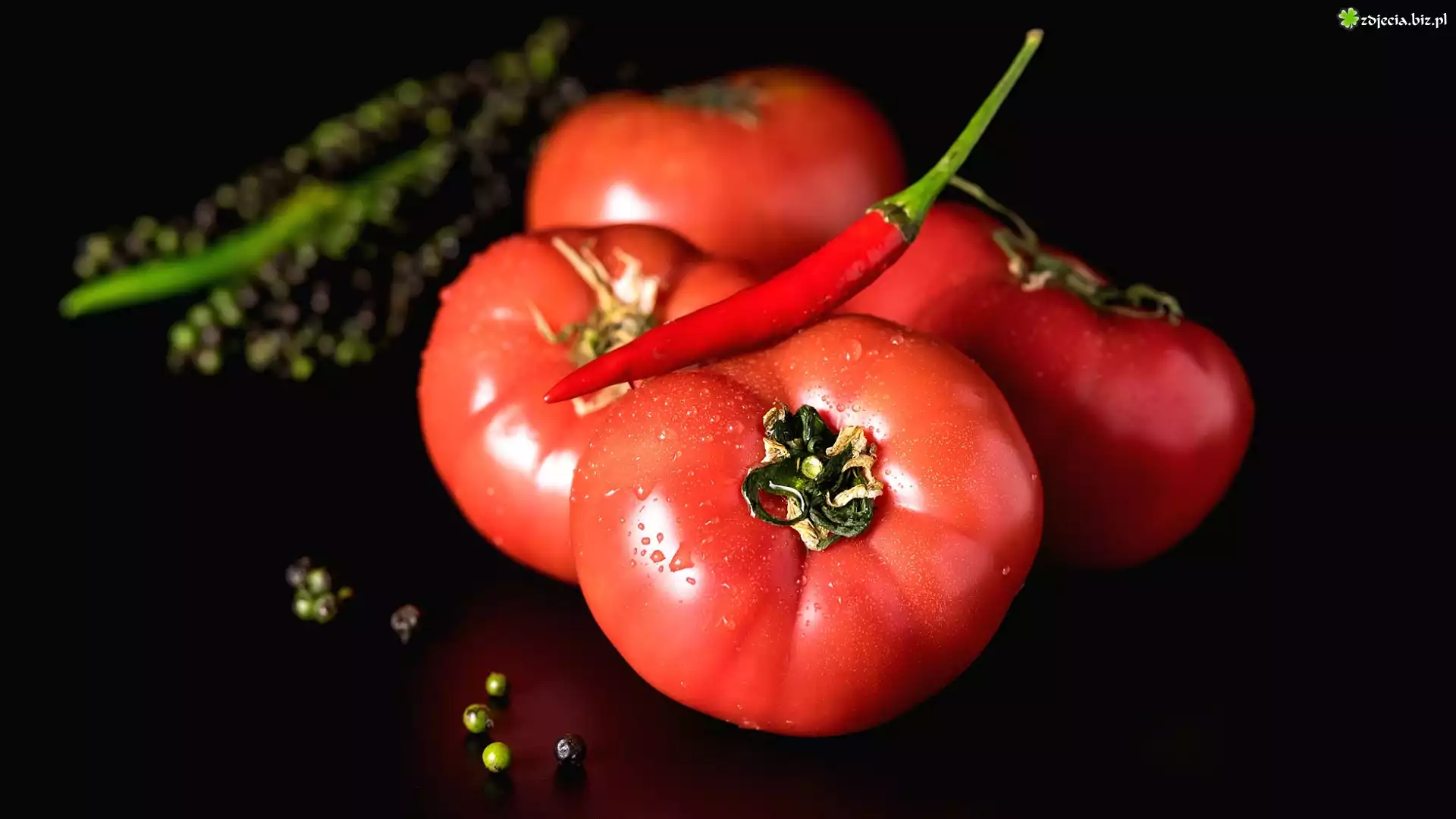 Zdjęcie Pomidory, Papryczka, Chili, Ziarenka, Pieprz