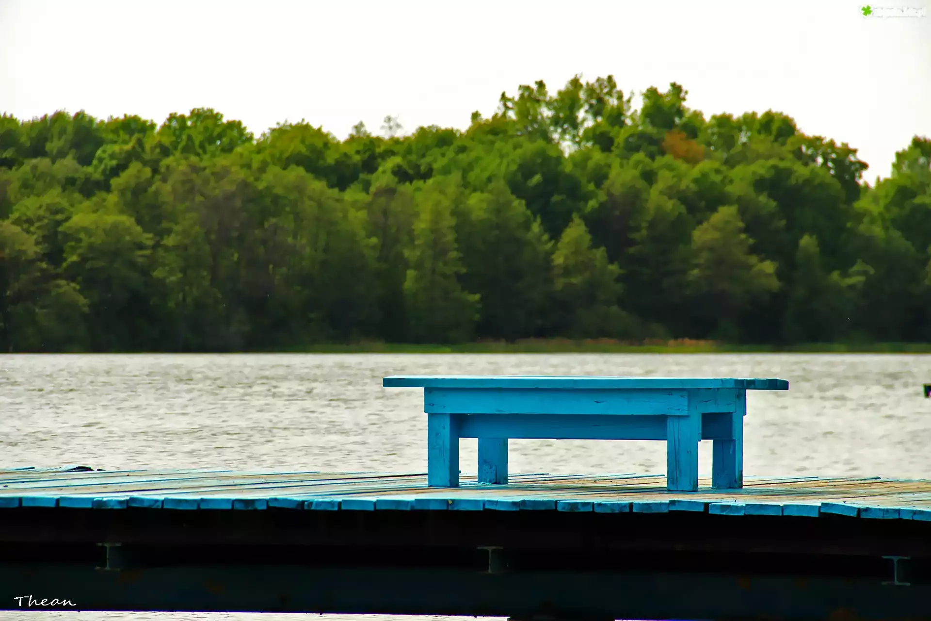 Zdjęcie Pomost, Jezioro, Niebieska, Ławka