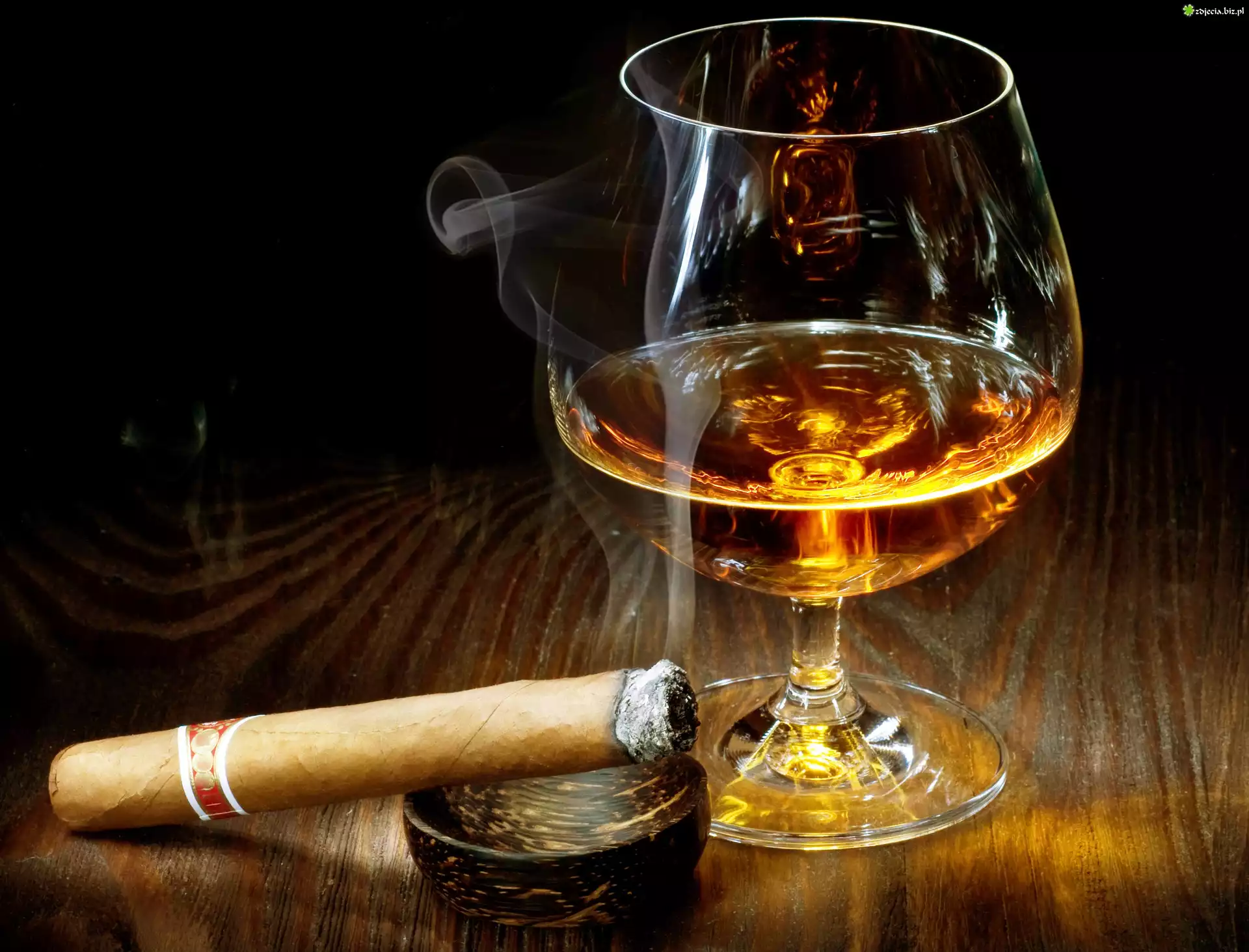 Zdjęcie Kieliszek, Popielniczka, Cygaro