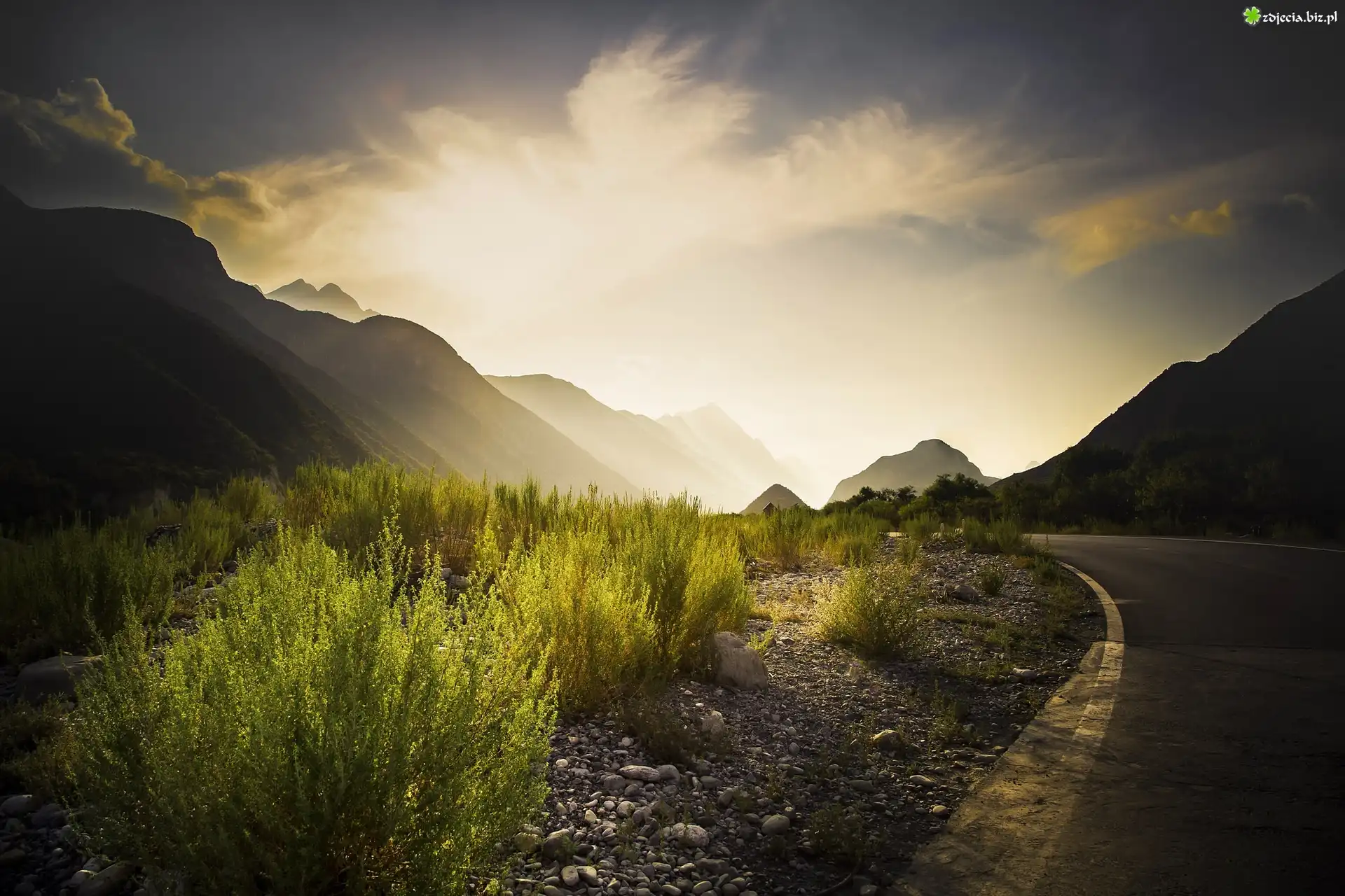 Droga, Las Wyspa, Morze Zachód Słońca, Góra, Plaża Las, Drzewa, Droga, Mgłą Droga, Zachmurzone, Niebo Balon, Łąka, Droga Góra, Zachody Śłońca Góra Góry, Drzewo, Las Polna, Droga, Zima, Słońce Fala Wodospad, skały Góra, łąki, Niebo Droga, Góry, Słońce