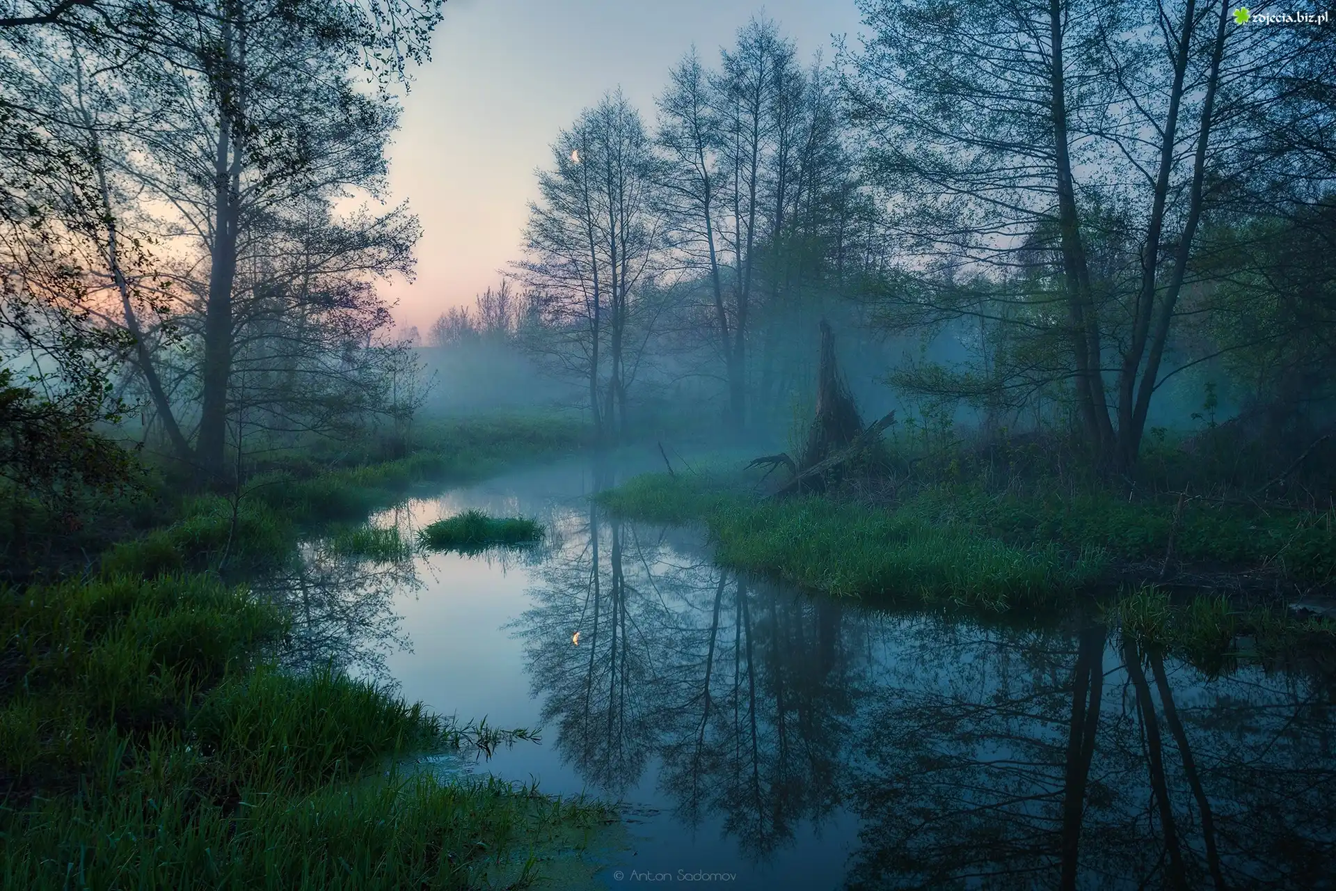 Zdjęcie Poranek, Mgła, Drzewa, Rzeka, Idolga, Obwód saratowski, Rosja