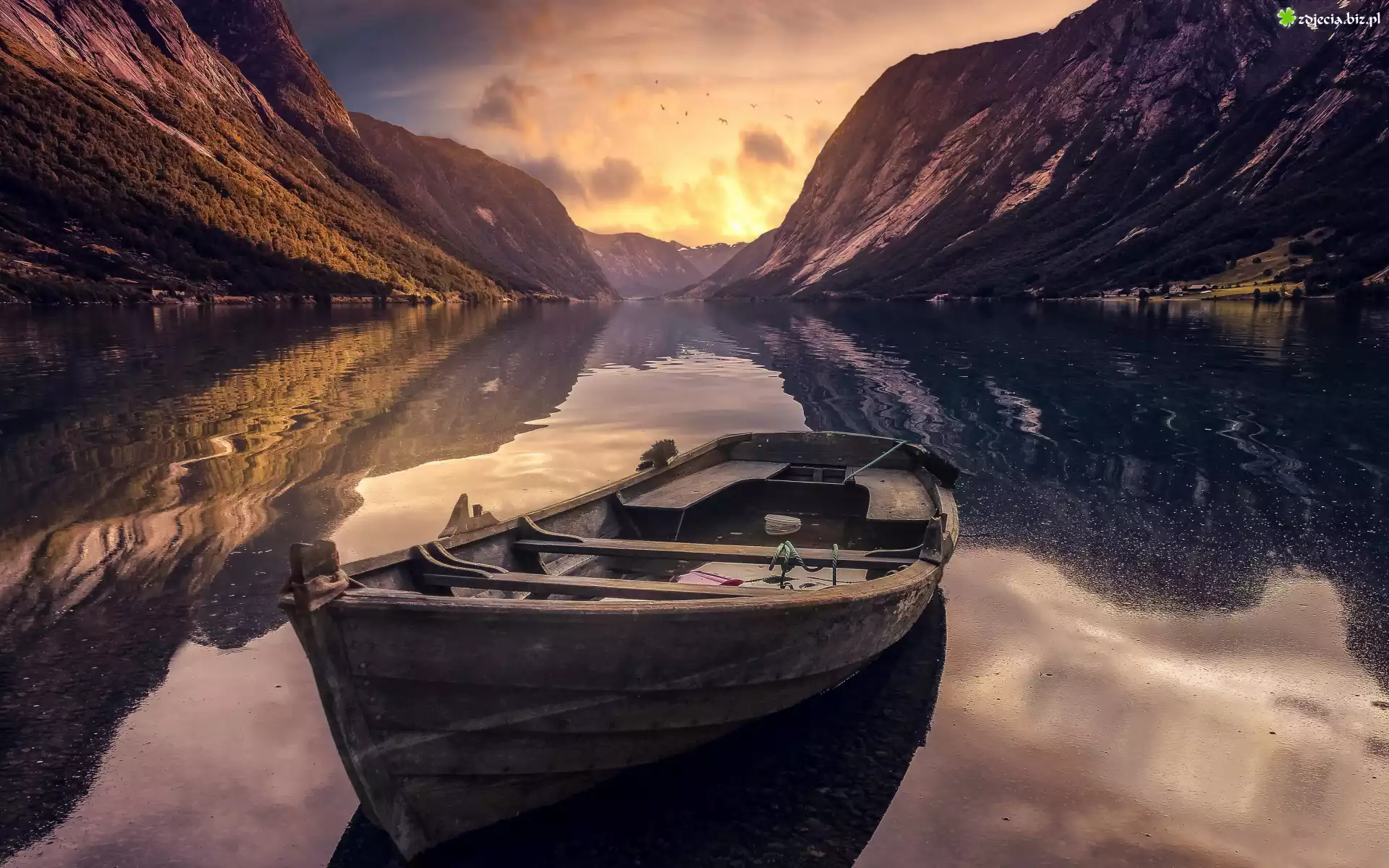 Zdjęcie Góry, Jezioro, Łódka, Poranek