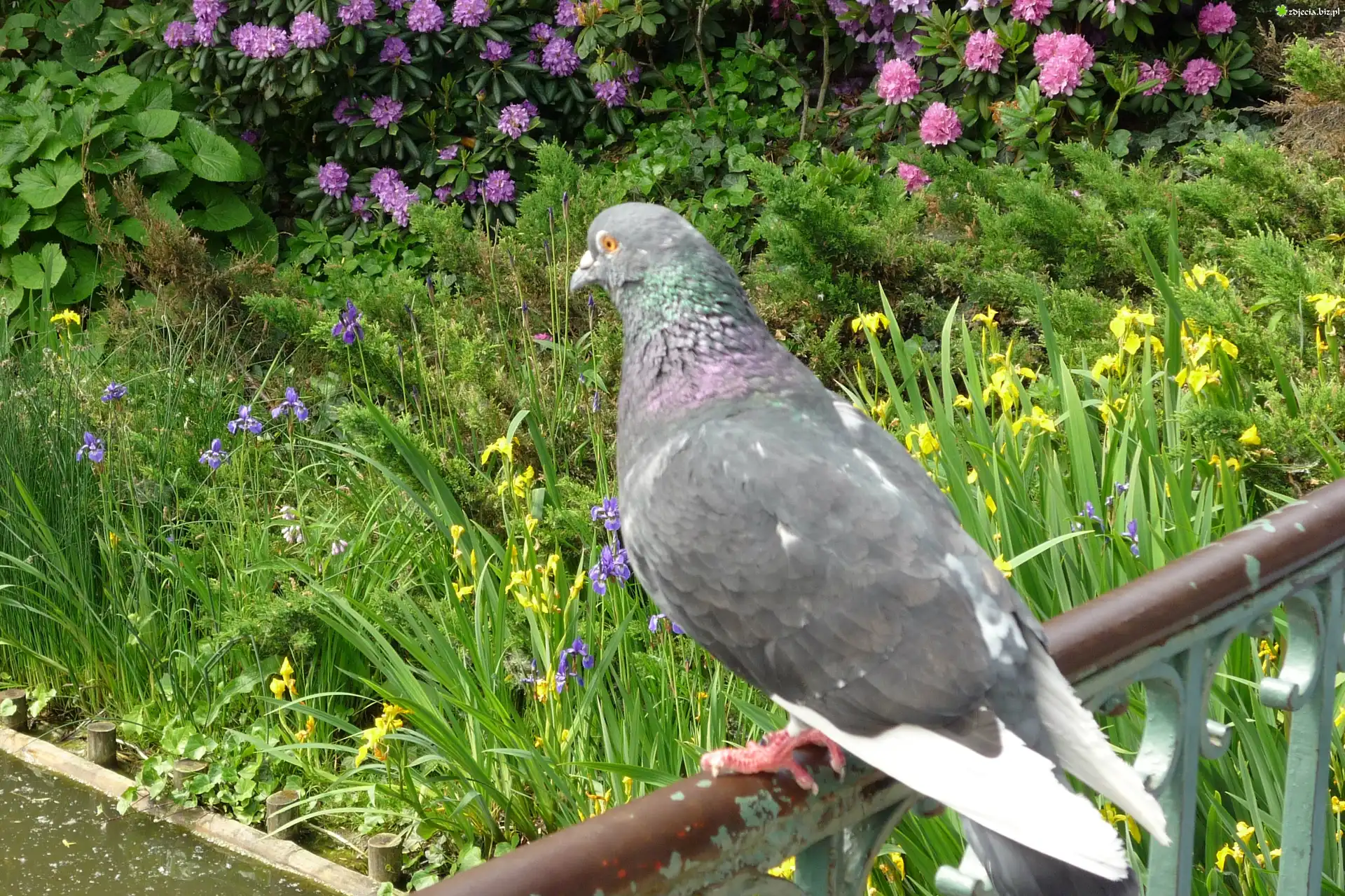 Zdjęcie, Gołąb, Poręcz, Kwiaty