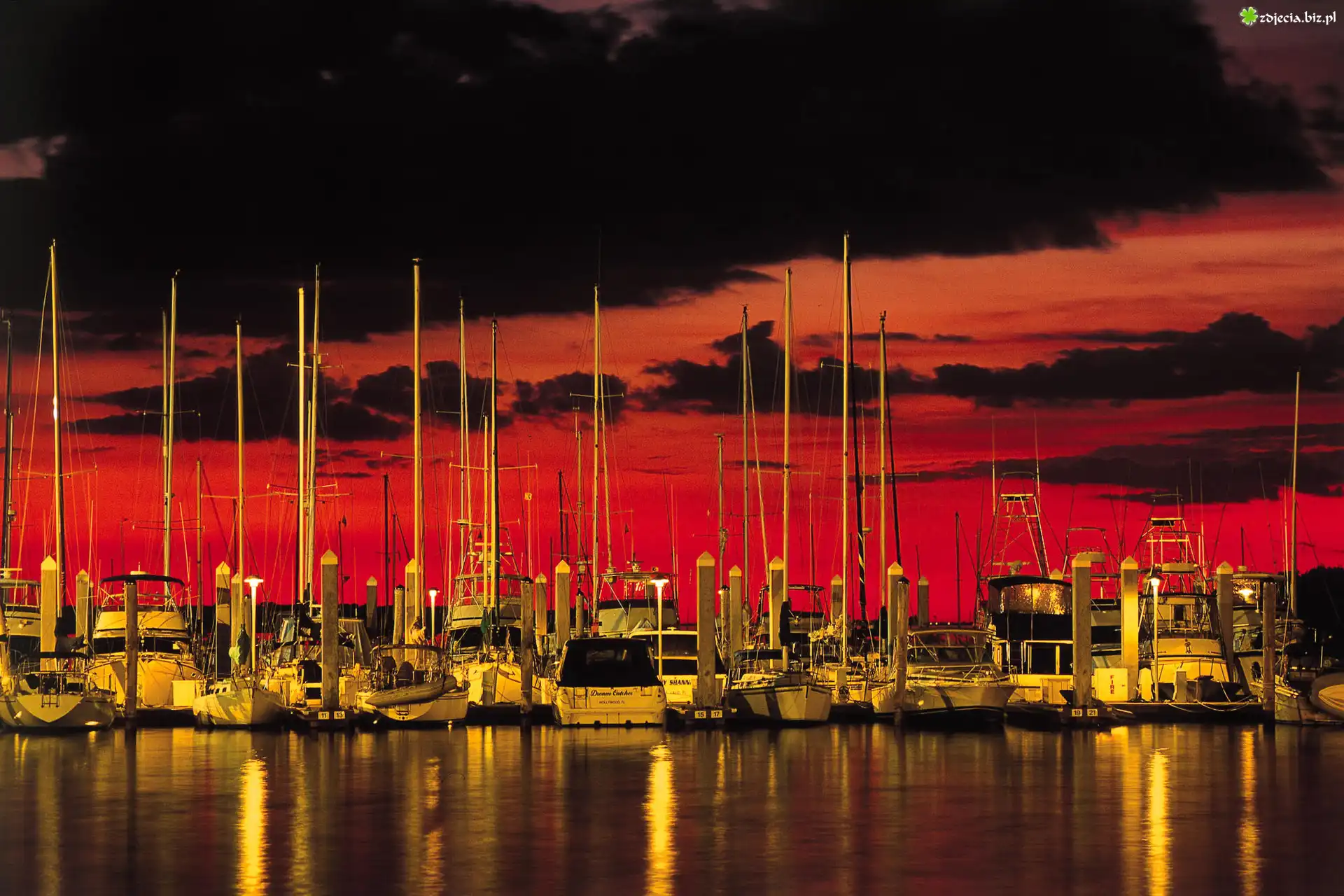 Zdjęcie Port, Jachty, Niebo, Chmury, Czerwień, Złoto