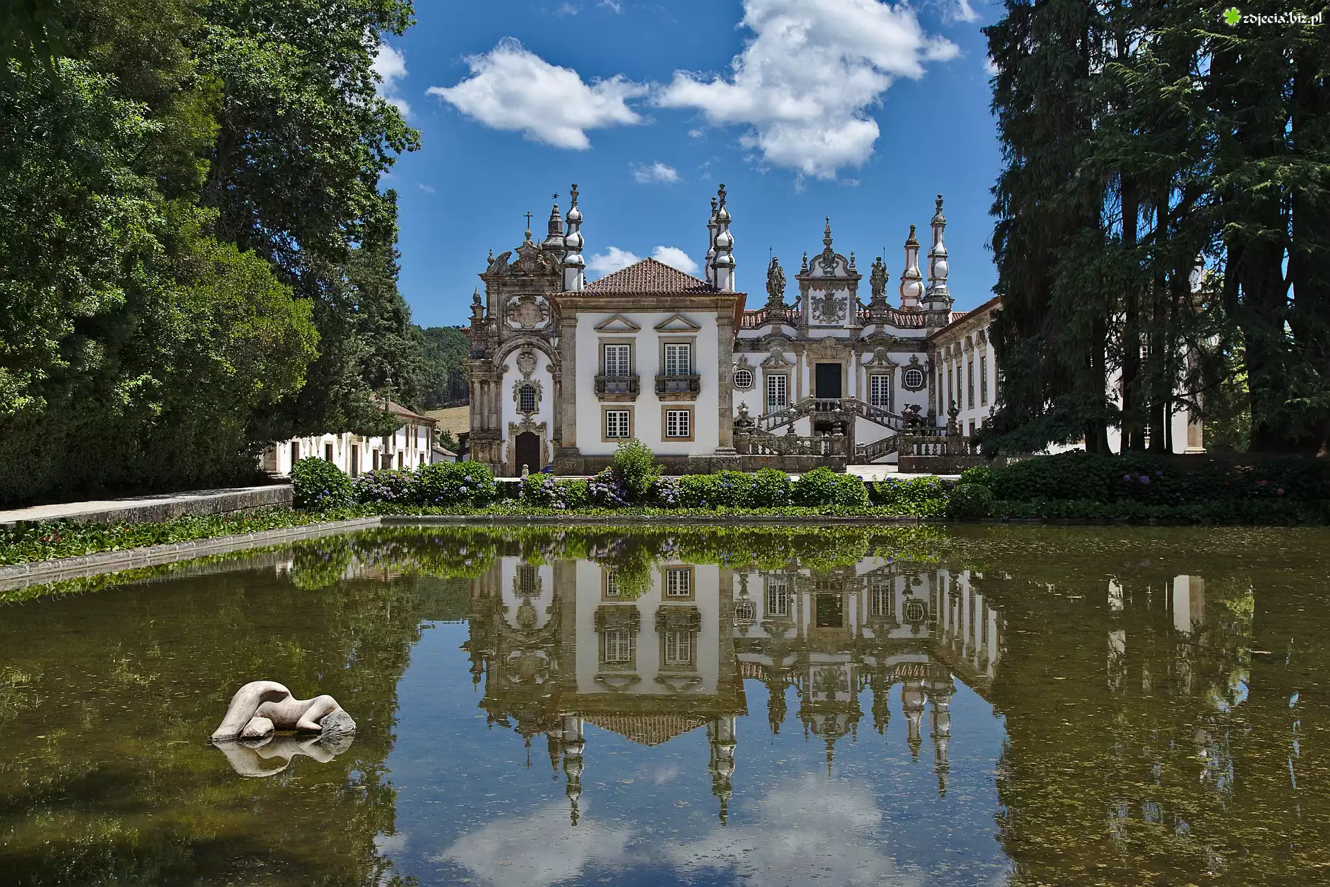 Zdjęcie Pałac, Casa de Mateus, Drzewa, Staw, Vila Real, Portugalia