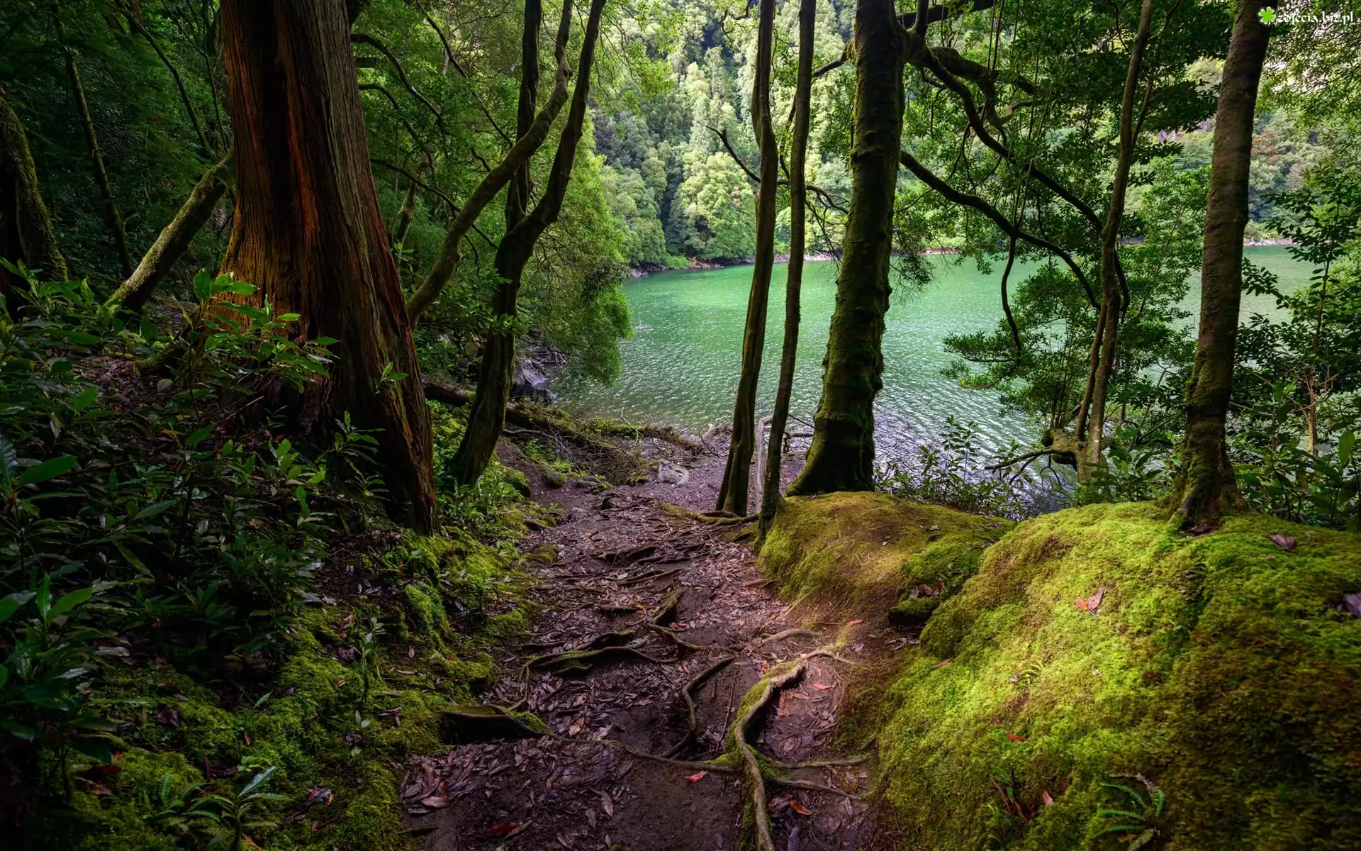 ZdjÄ™cie, Portugalia, Azory, Wyspa São Miguel, Las, Jezioro Lagoa do Congro, Åšcieżka