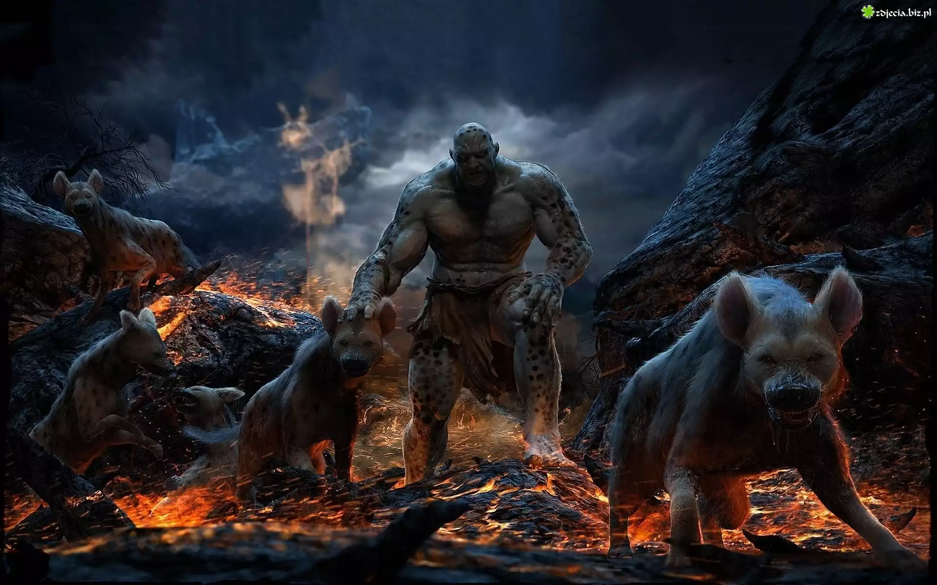 Zdjęcie Postać, Mrok, Hieny, Ogień