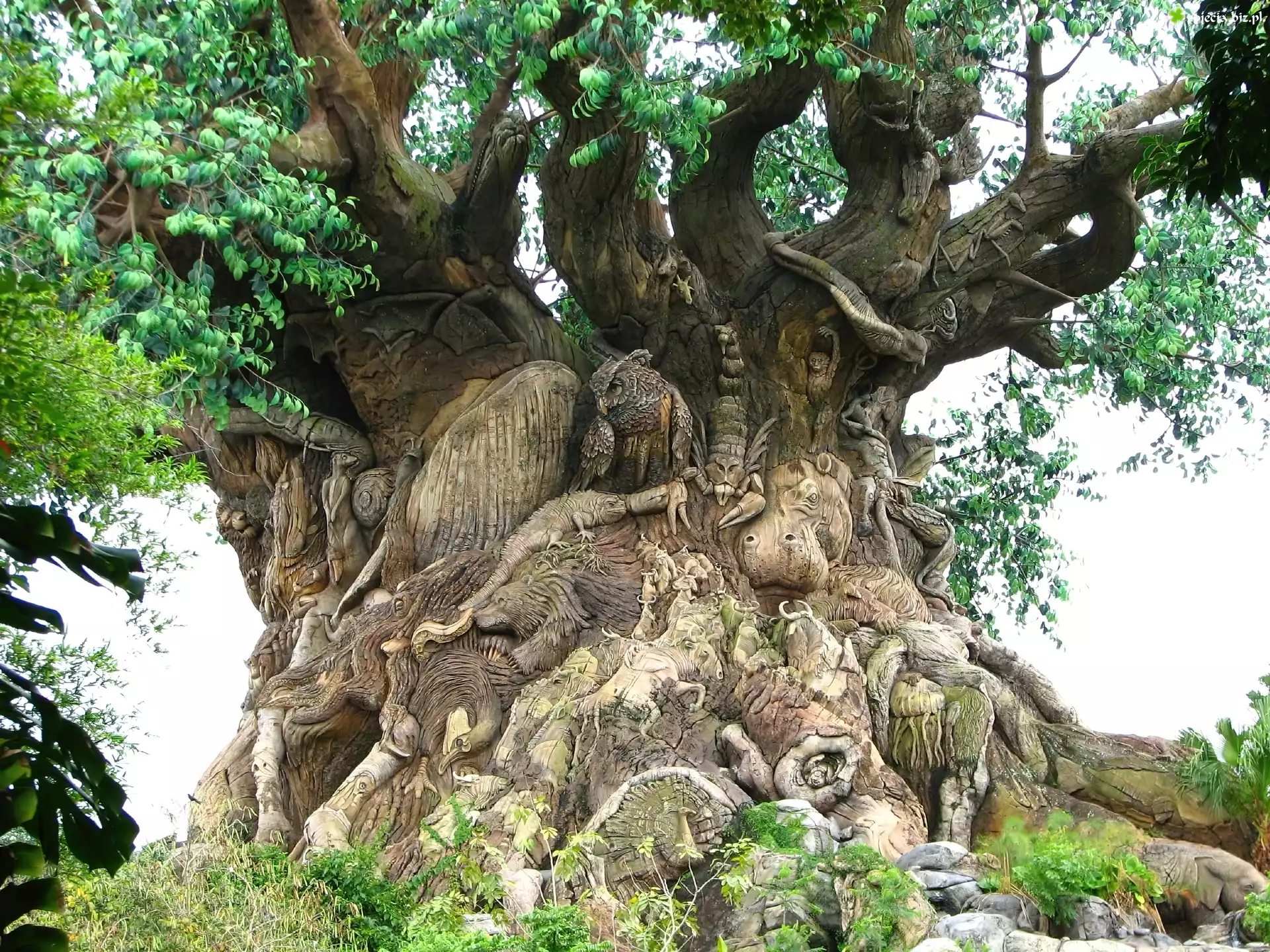 Zdjęcie Potężne, Drzewo, Rzeźby, Zwierząt, Ptaków