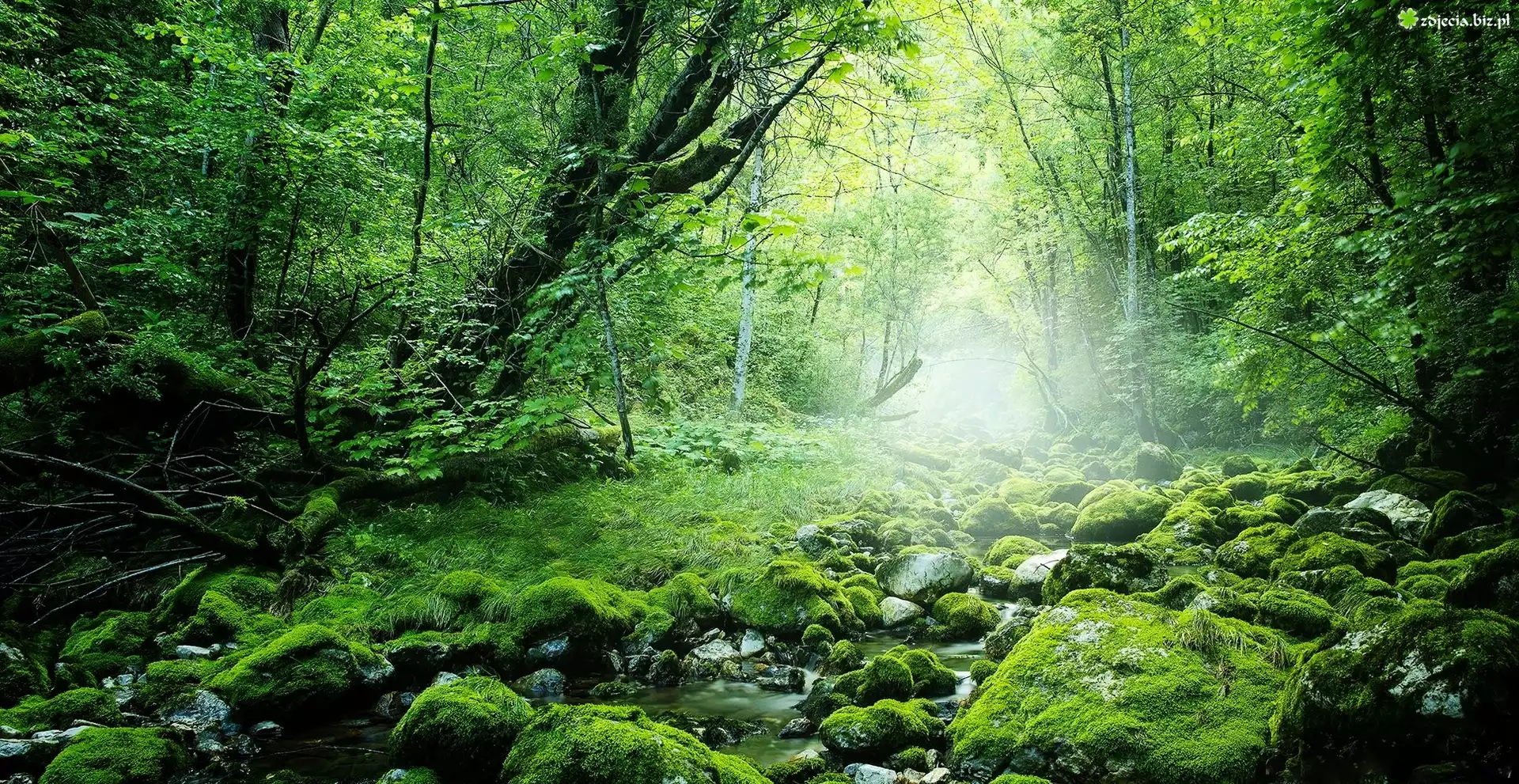 Zdjęcie Potok, Omszone, Kamienie, Las