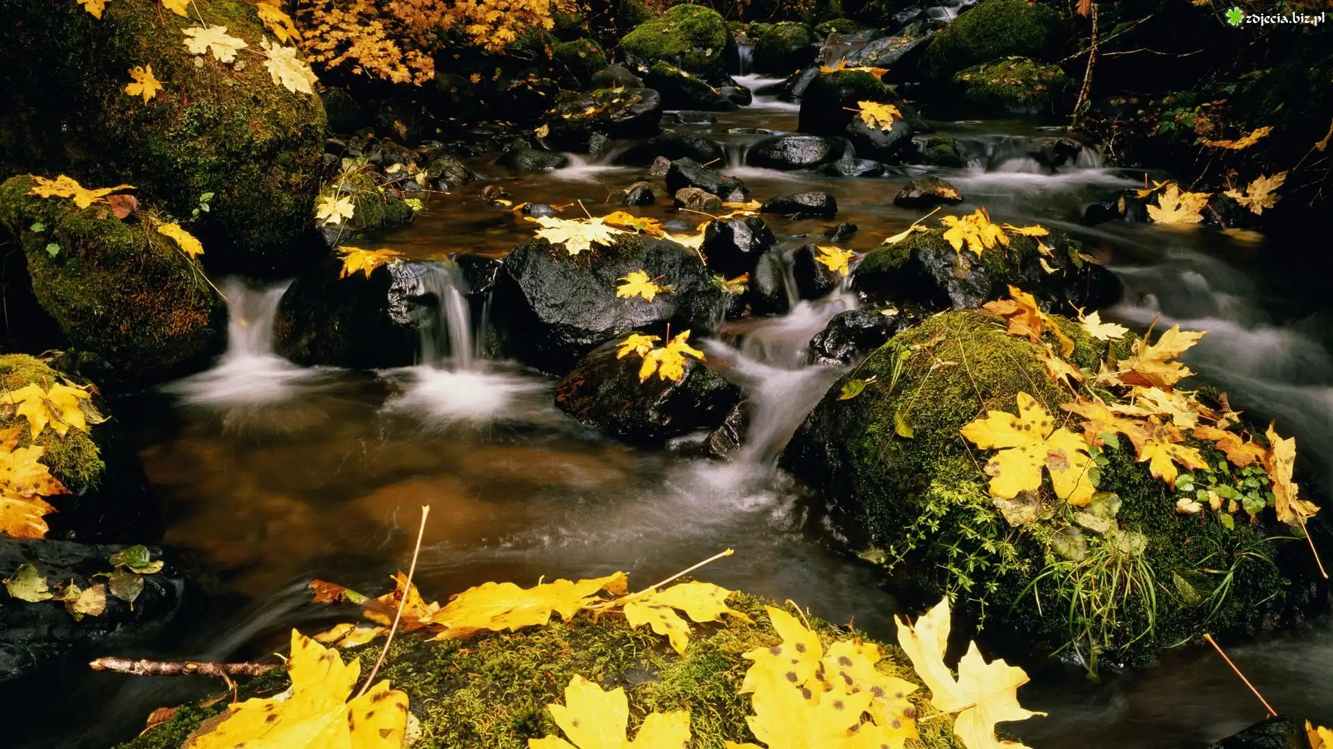 Zdjęcie Żółte, Liście, Potok, Kamienie