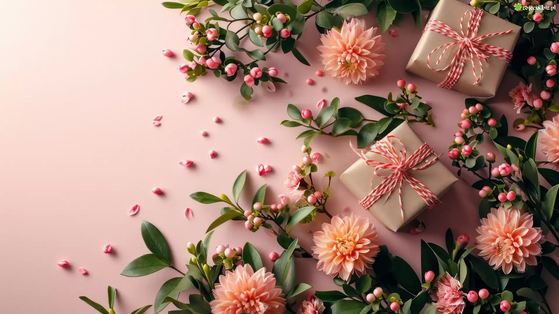 Zdjęcie Kwiaty, Dalie, Liście, Prezent