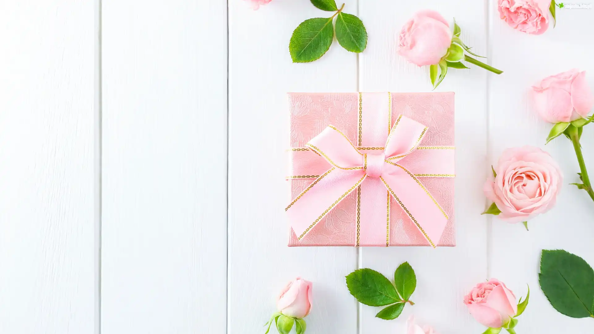 Zdjęcie Prezent, Różowe, Róże, Listki, Deski