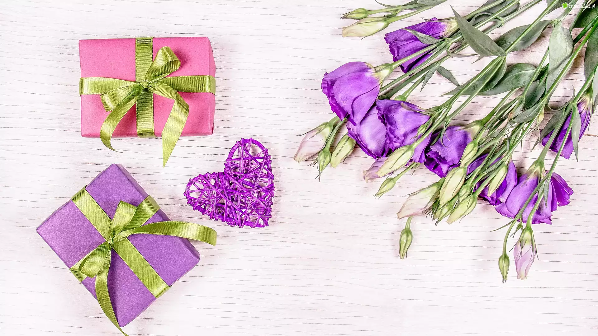 Zdjęcie, Prezenty, Serce, Fioletowe, Eustomy, Pąki, Walentynki