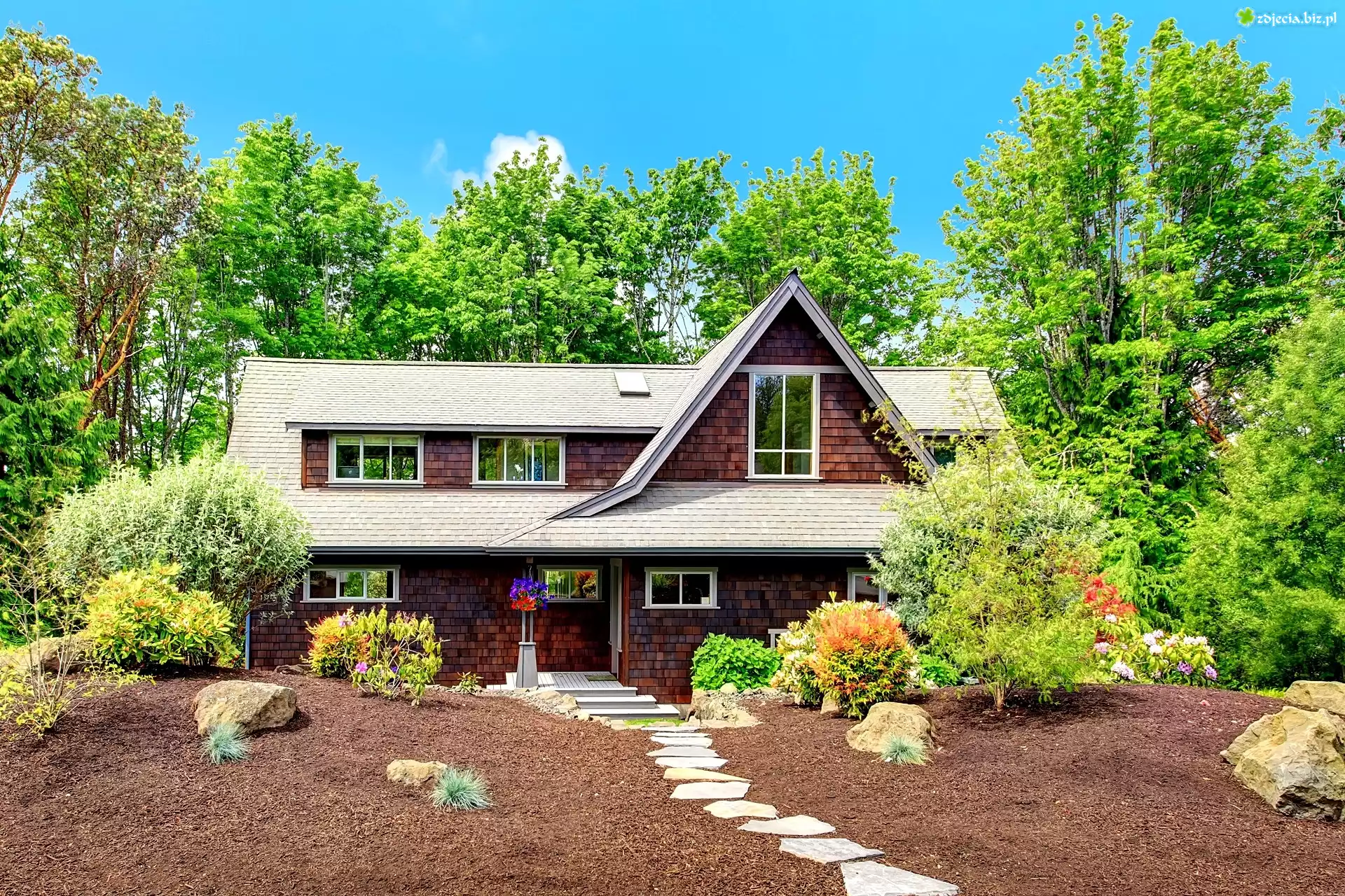 Zdjęcie Projekt, Dom, Ogród, Drzewa
