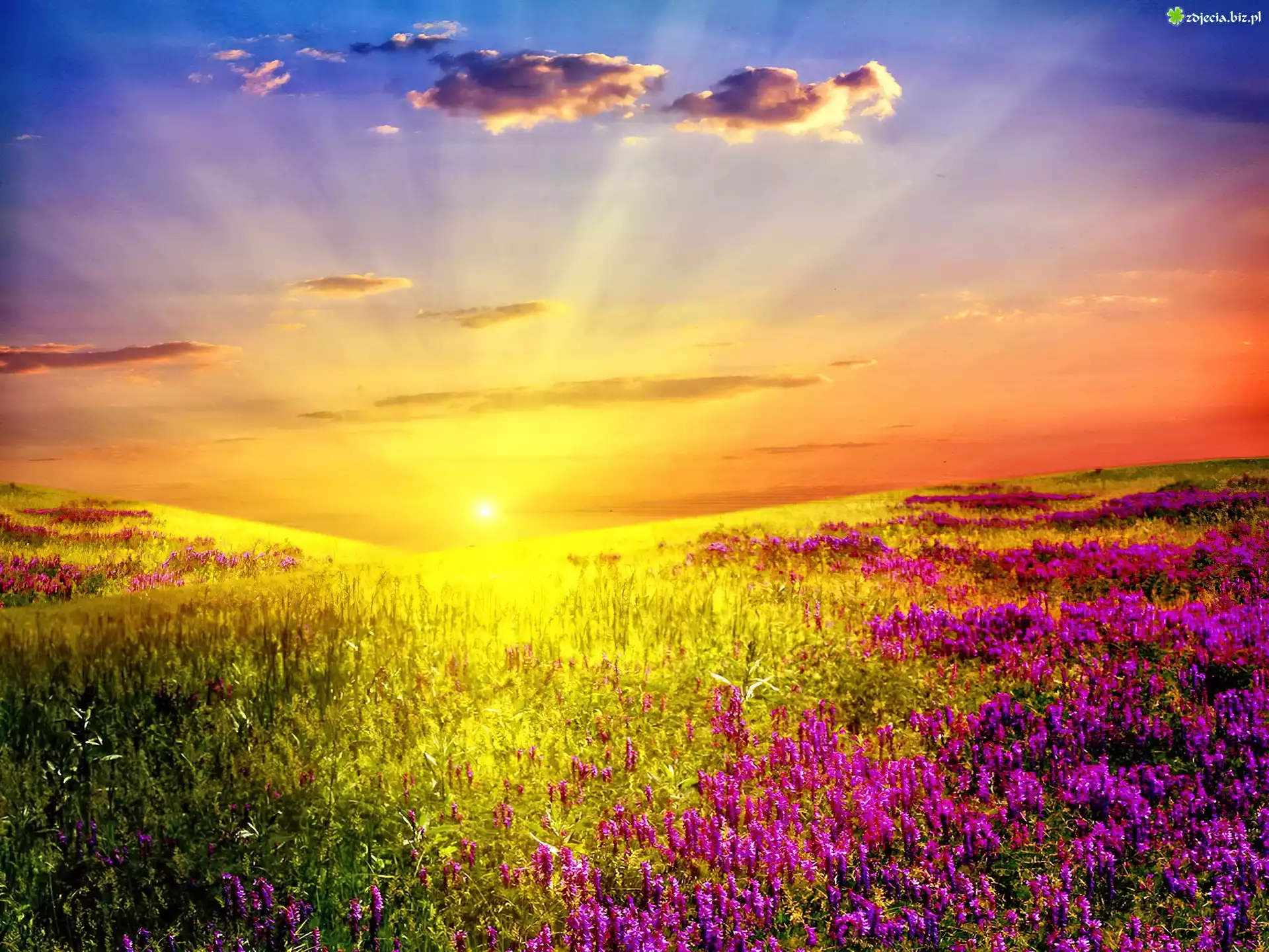 Zdjęcie Promienie, Słońca, Łąka, Kwiaty