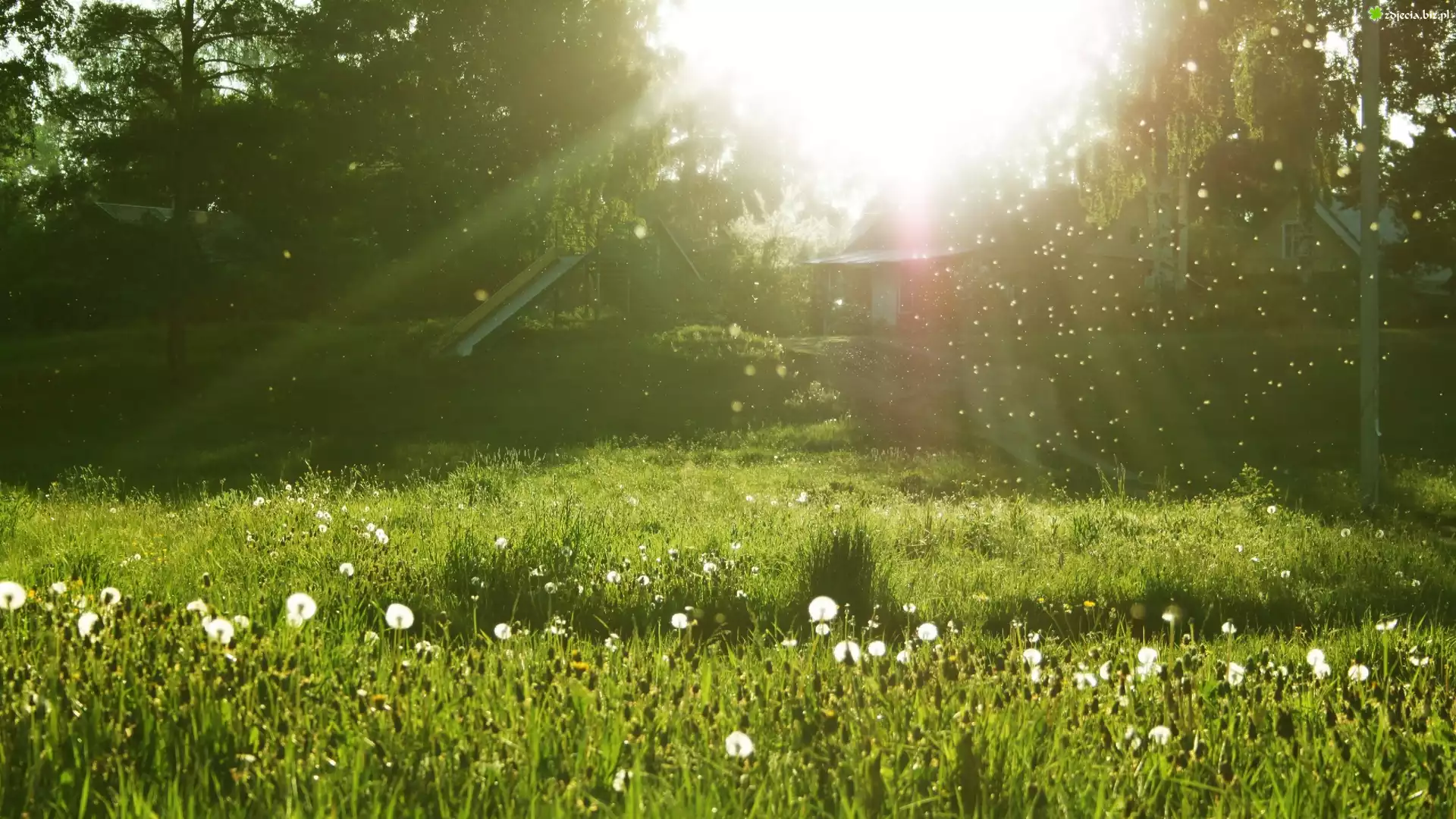 Zdjęcie Łąka, Dmuchawce, Jaskier, Promienie, Słońca