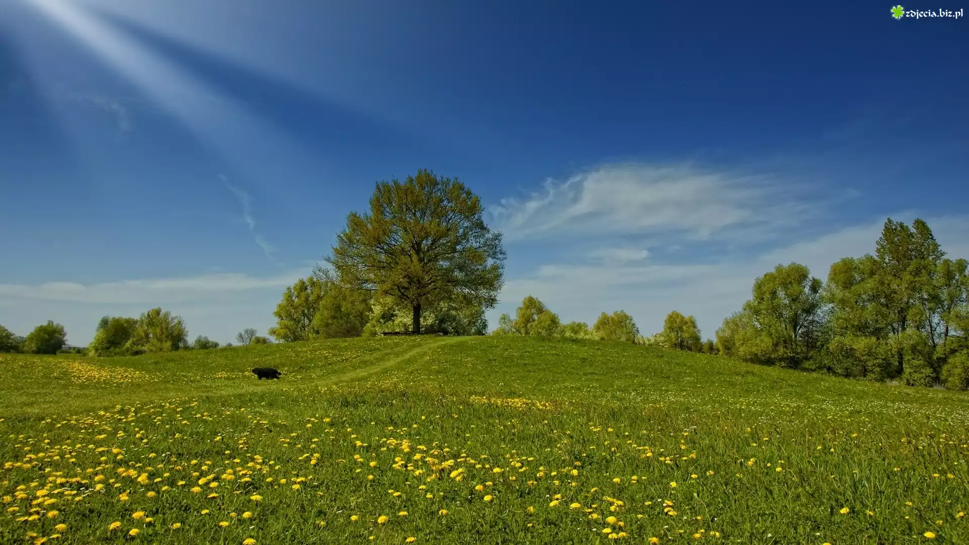 Zdjęcie Łąka, Drzewa, Promienie, Słońca