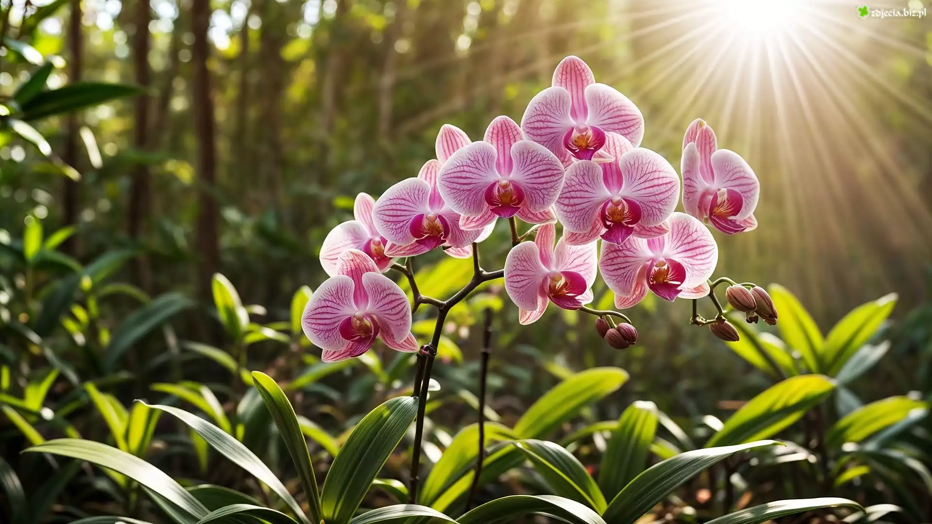 Zdjęcie Orchidea, Storczyk, Kwiaty, Promienie słońca, Grafika