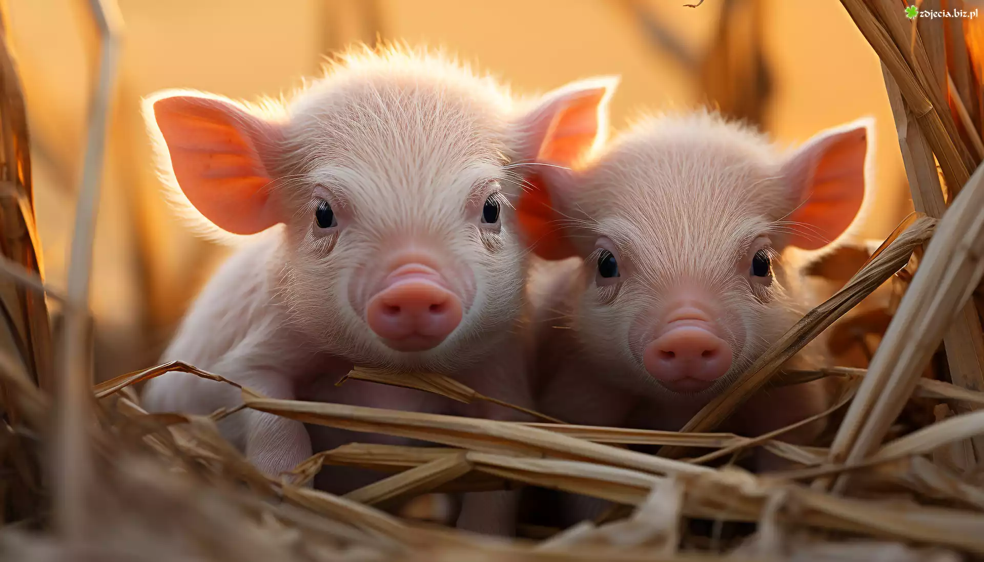 Zdjęcie Dwie, Świnki, Słoma, Prosięta