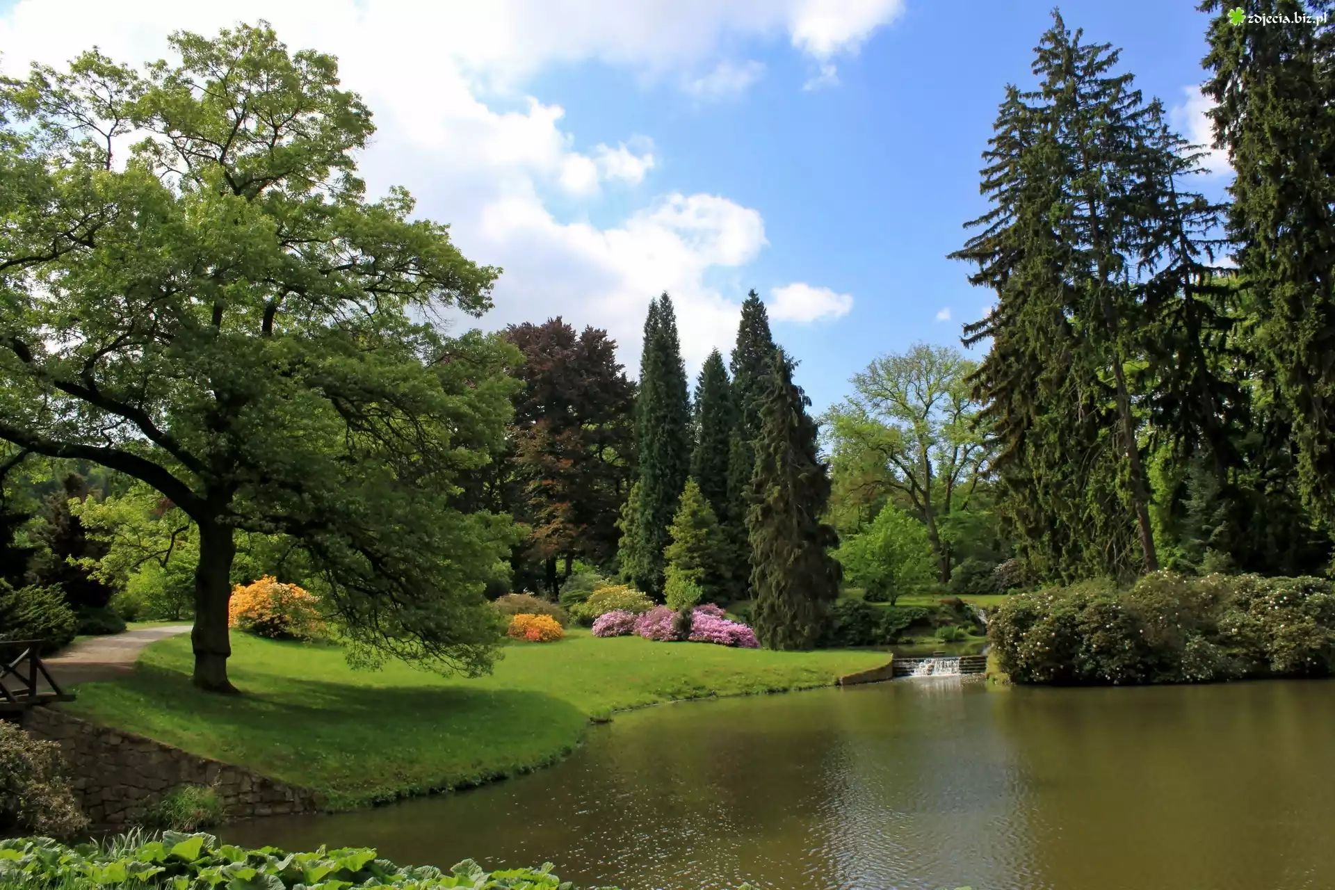 Zdjęcie, Pruhonice, Park, Staw, Przebijające, Światło