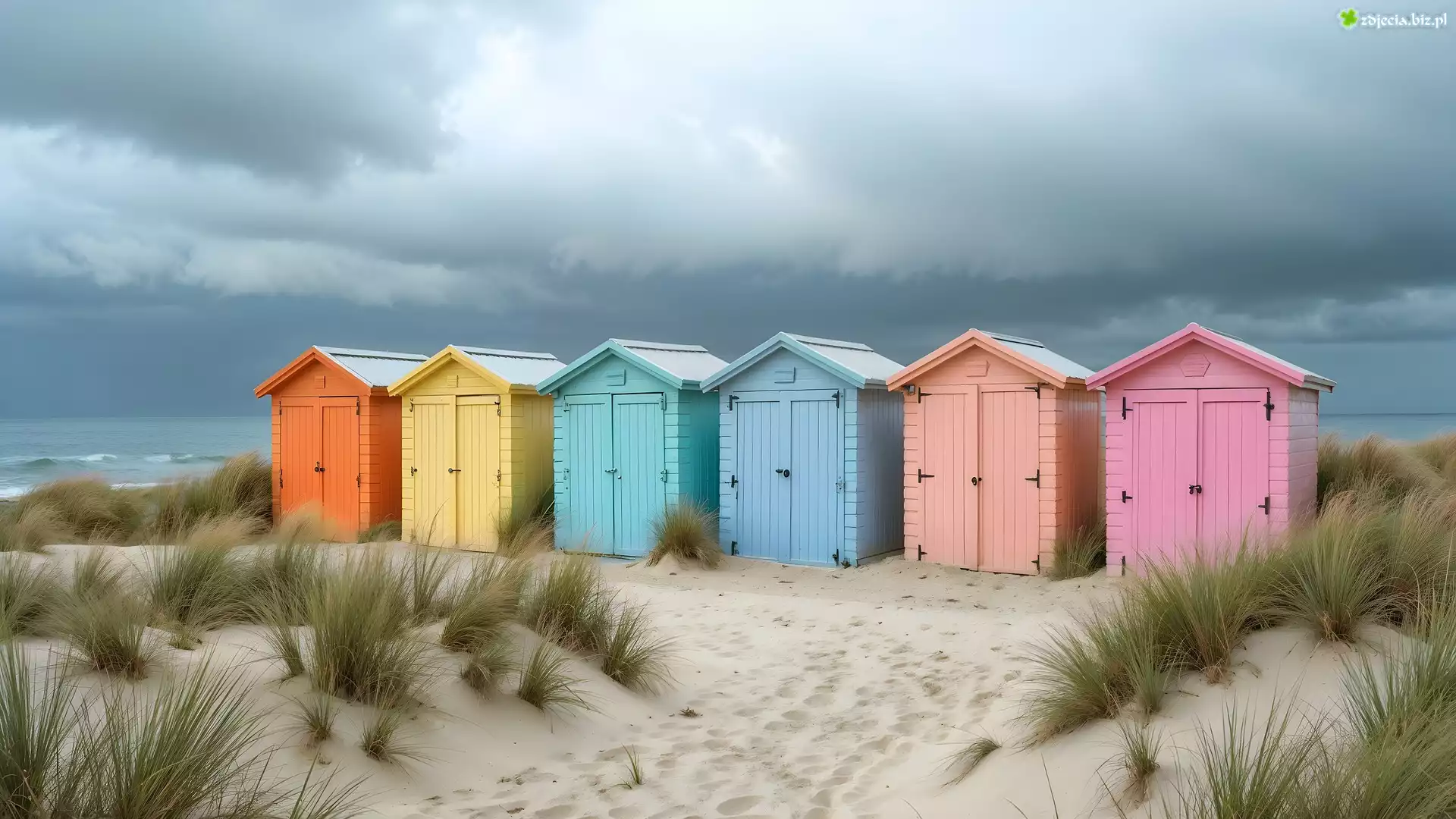 Zdjęcie Plaża, Morze, Kolorowe, Przebieralnie