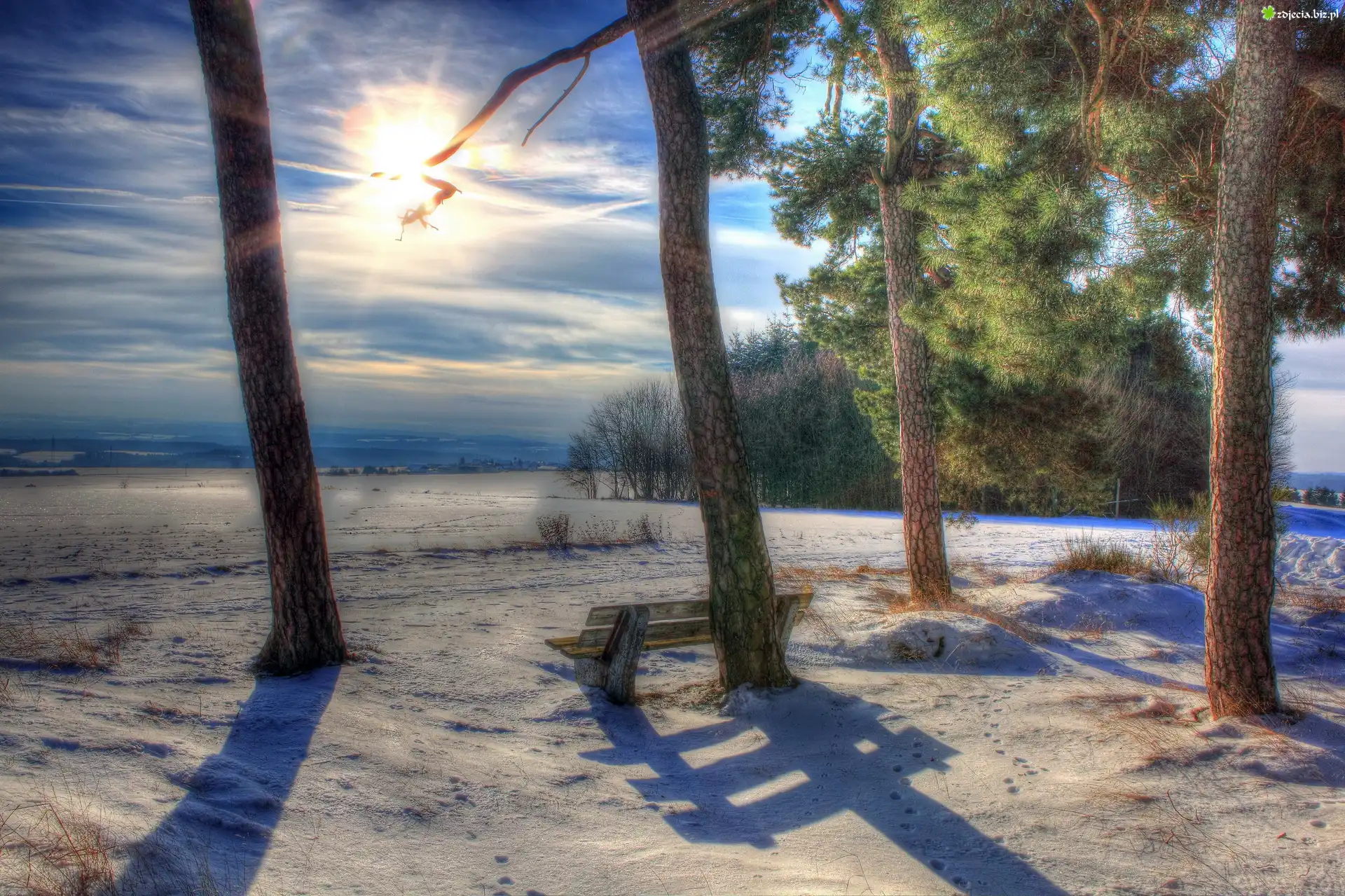 Zdjęcie Przebijające, Światło, Drzewa, Zima