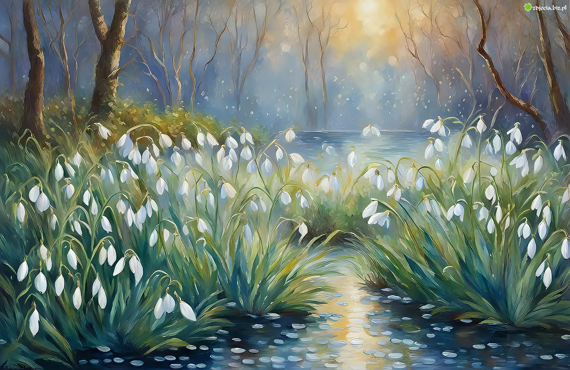 Zdjęcie Przebiśniegi, Drzewa, Grafika