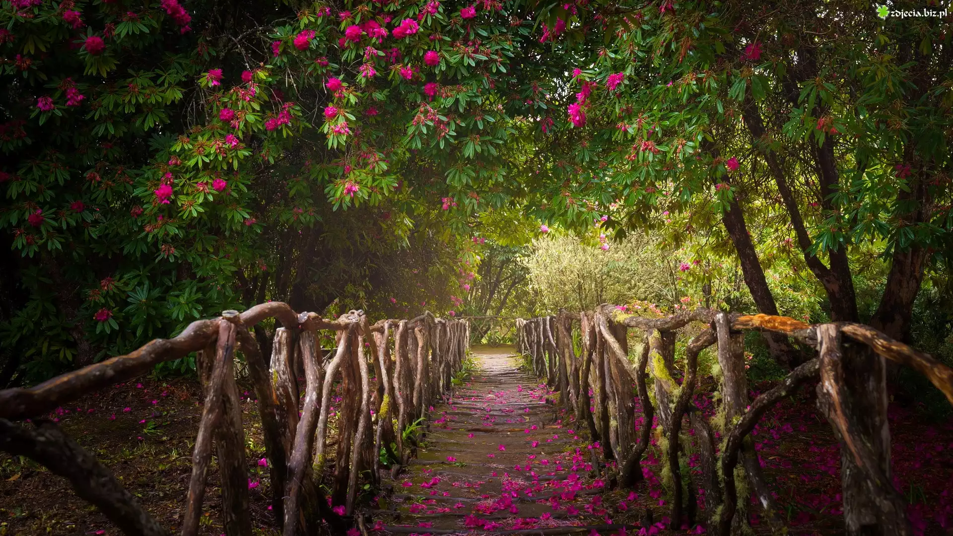 Zdjęcie Przejście, Balustrada, Ogrodzenie, Ścieżka, Różaneczniki