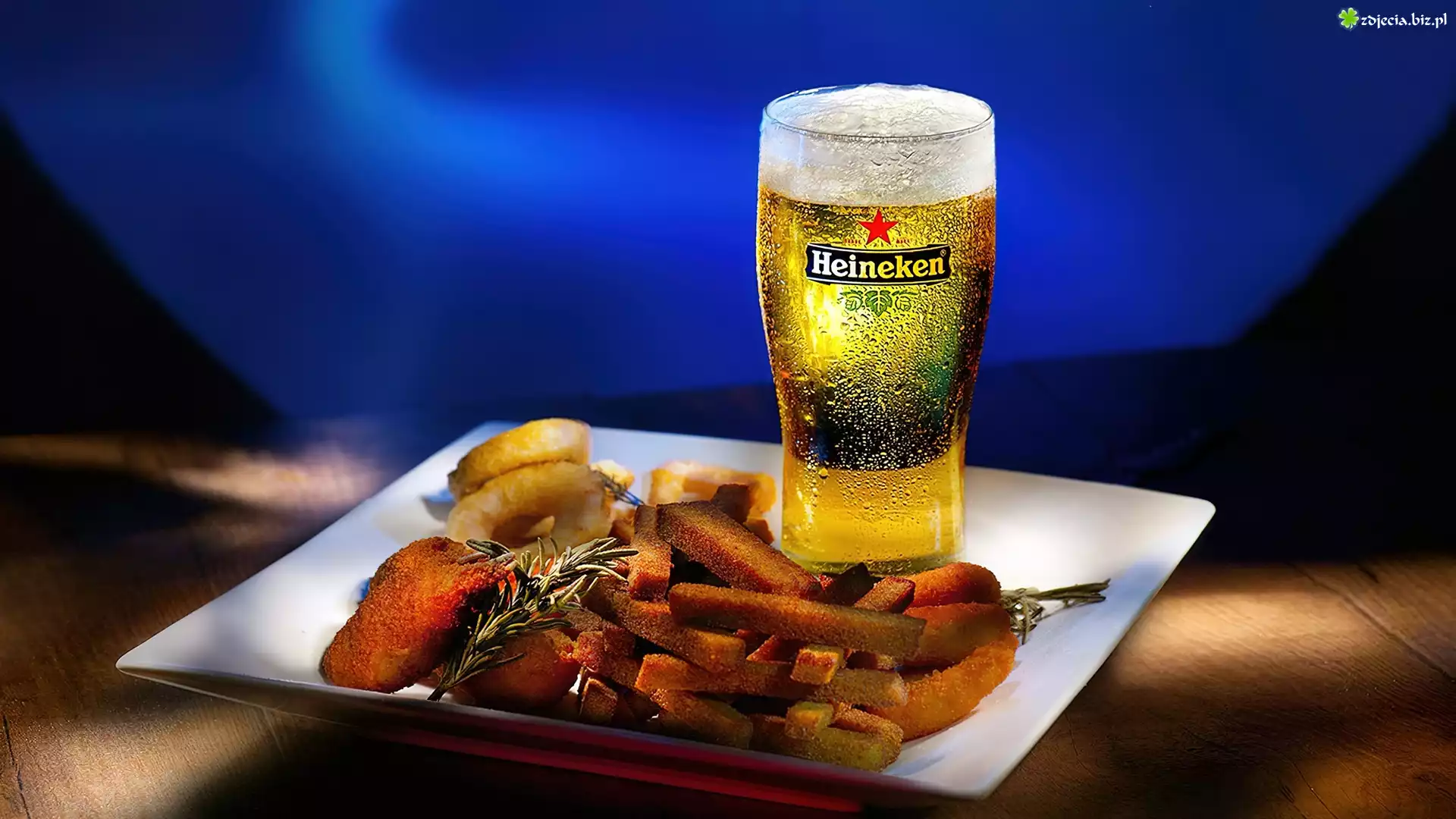 Zdjęcie Przekąska, Piwo, Szkło, Heineken