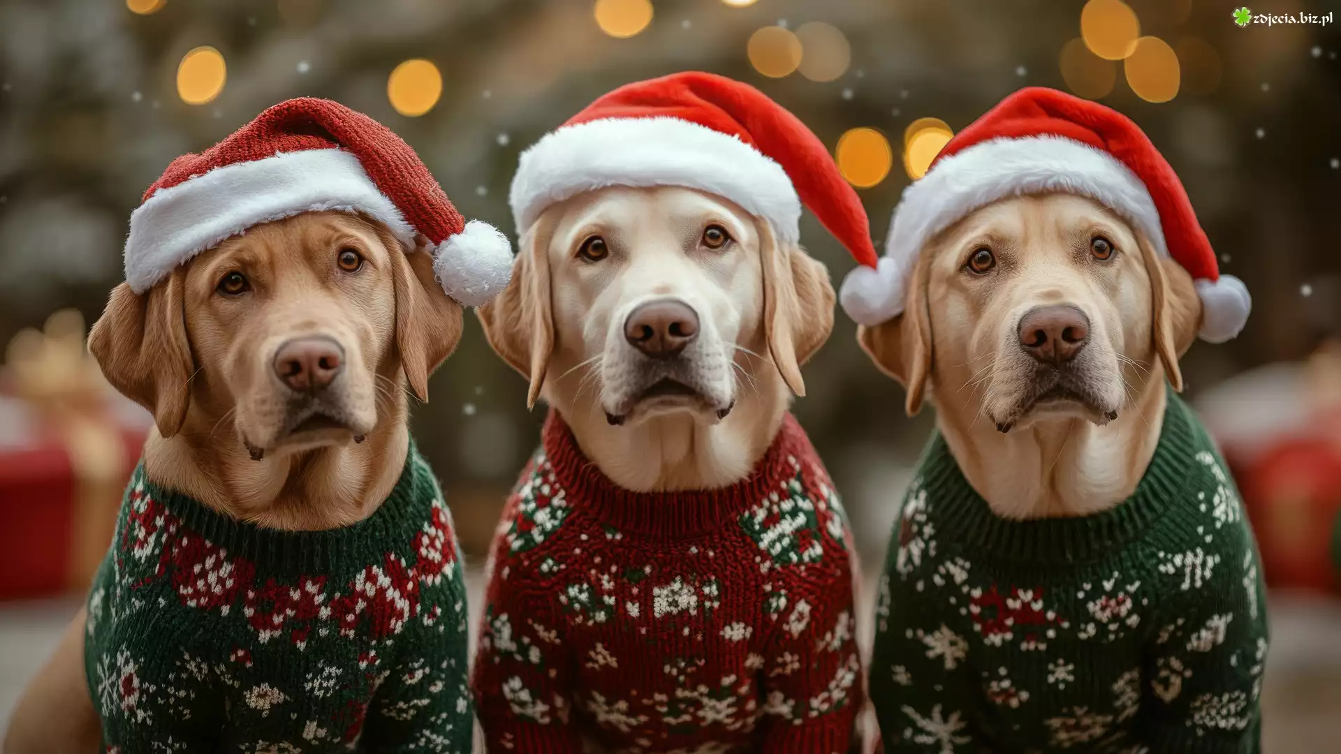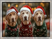 Zdjęcie Trzy, Psy, Czapki, Mikołaja, Swetry