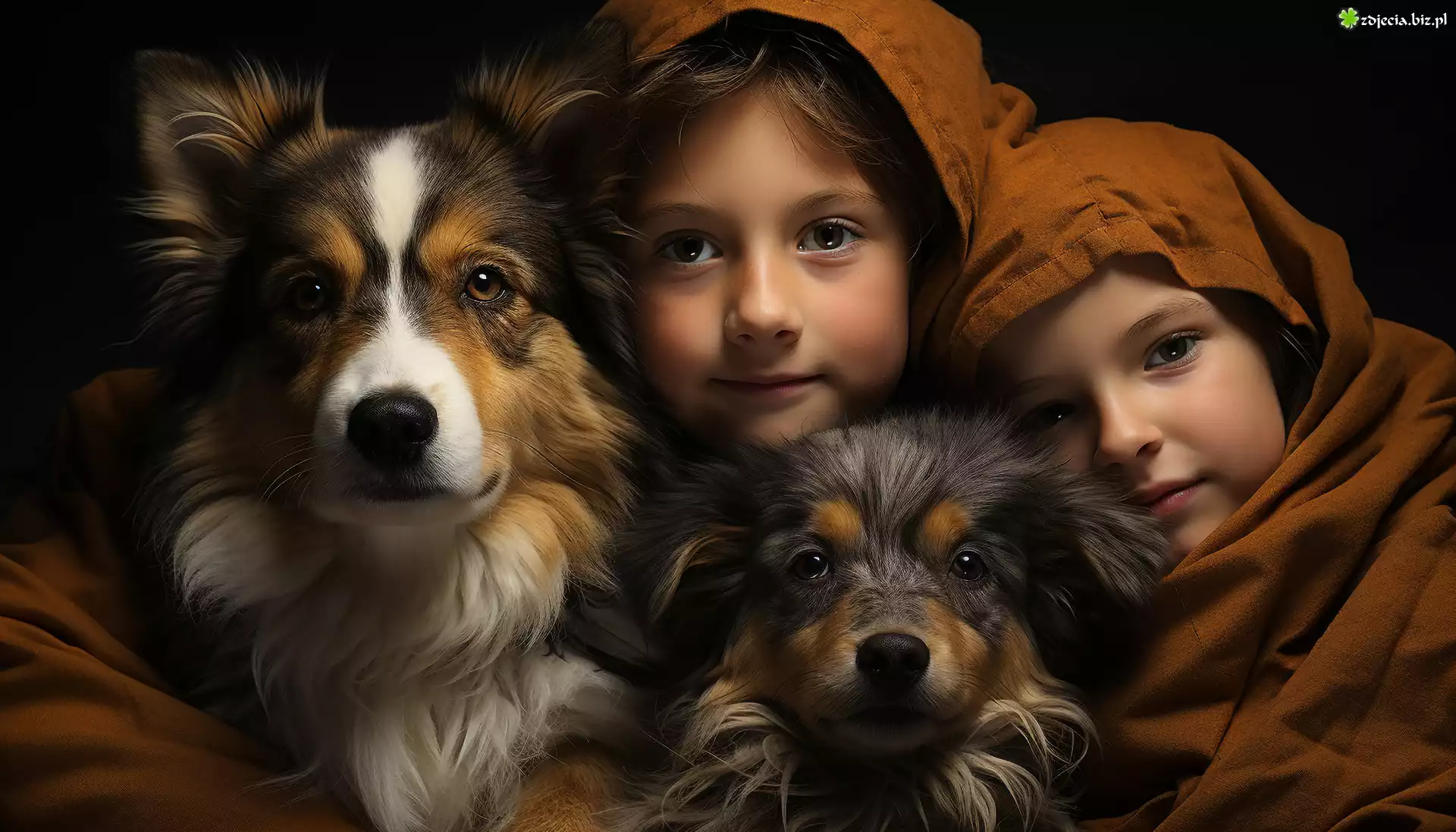 Zdjęcie Dwójka, Dzieci, Dwa, Psy
