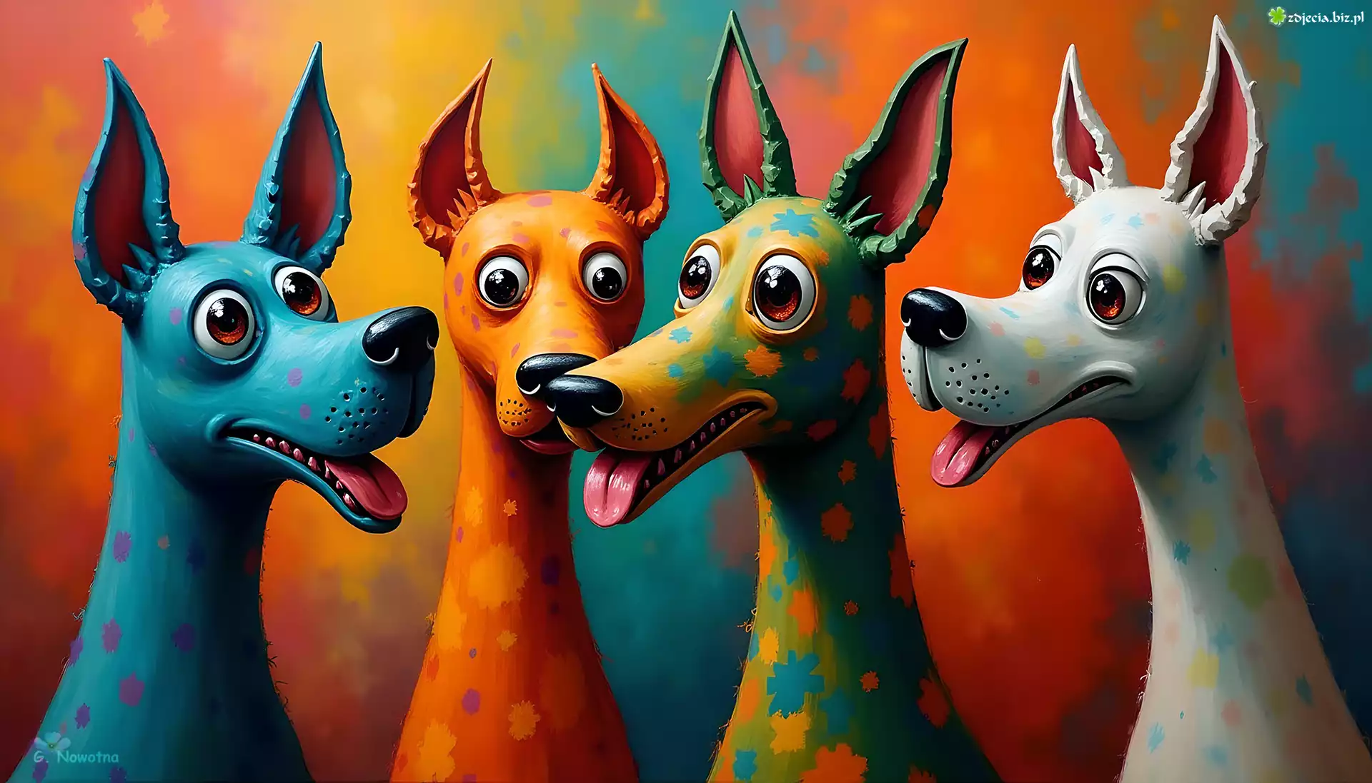 Zdjęcie Grafika, Kolorowe, Cztery, Psy