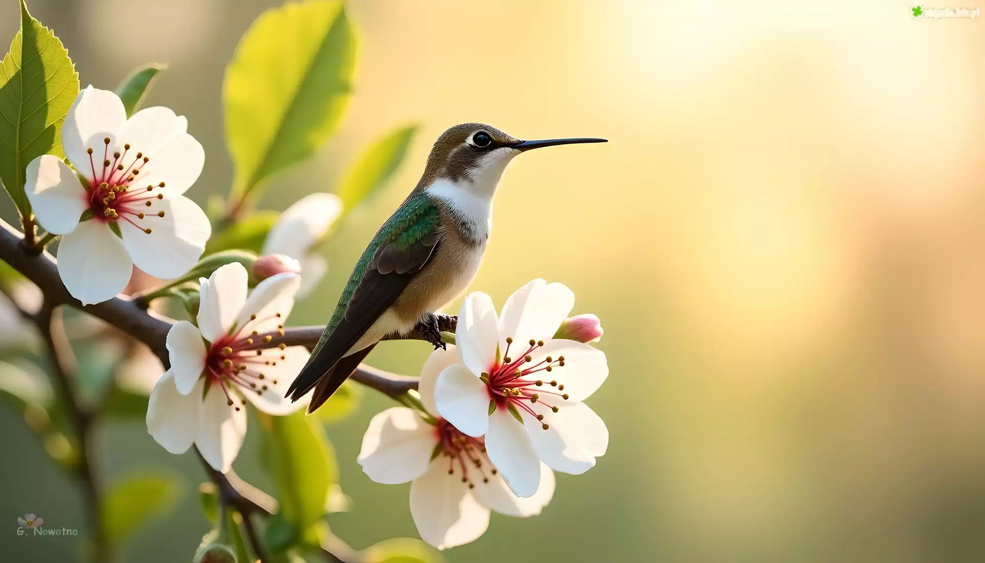 Zdjęcie Koliber, Ptak, Białe, Grafika, Kwiaty