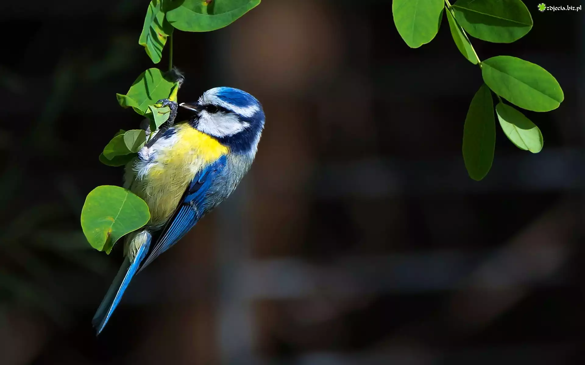 Zdjęcie Ptak, Sikorka, Gałązki, Liście