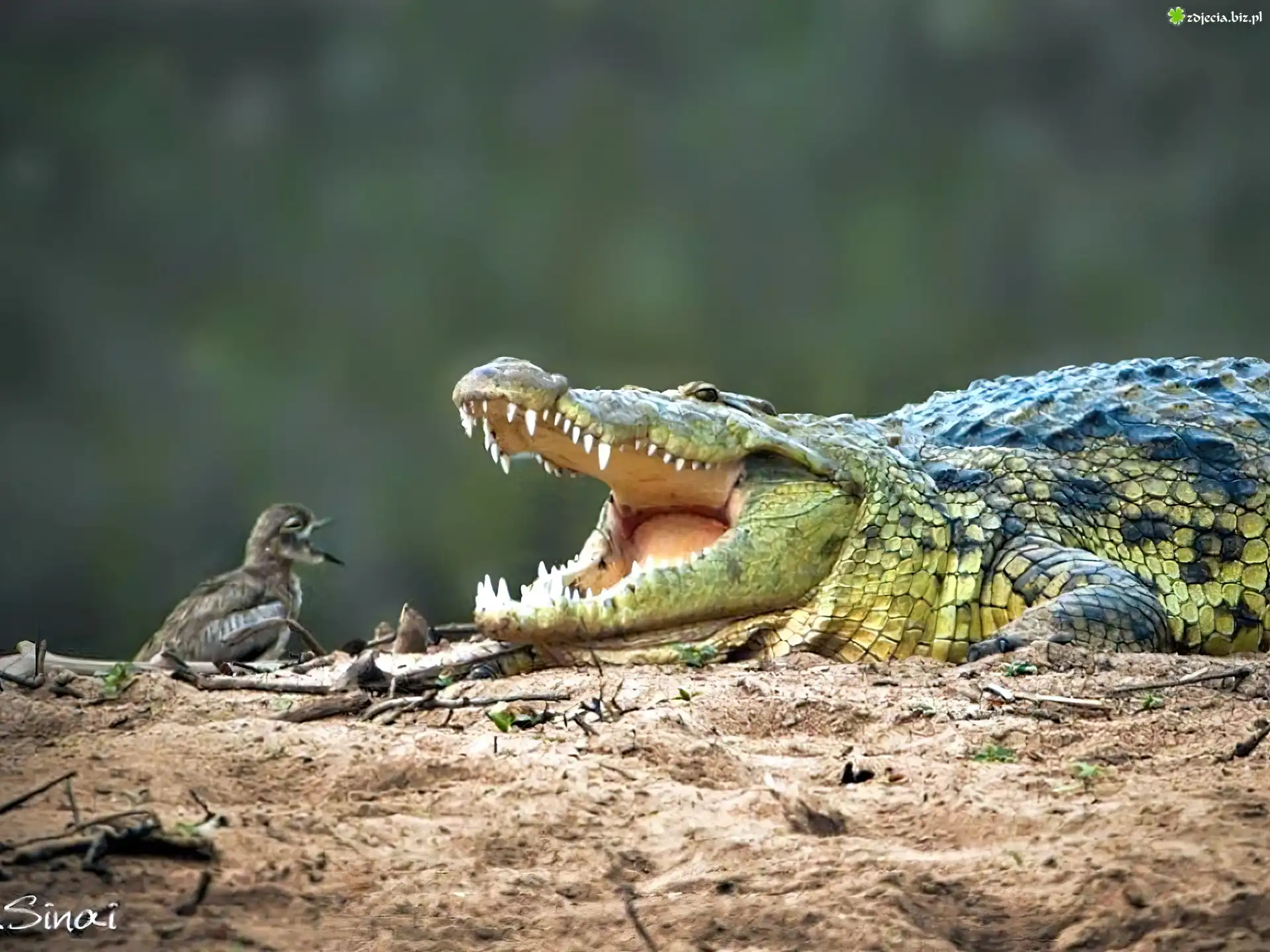 Zdjęcie, Krokodyl, Ptak, Piasek