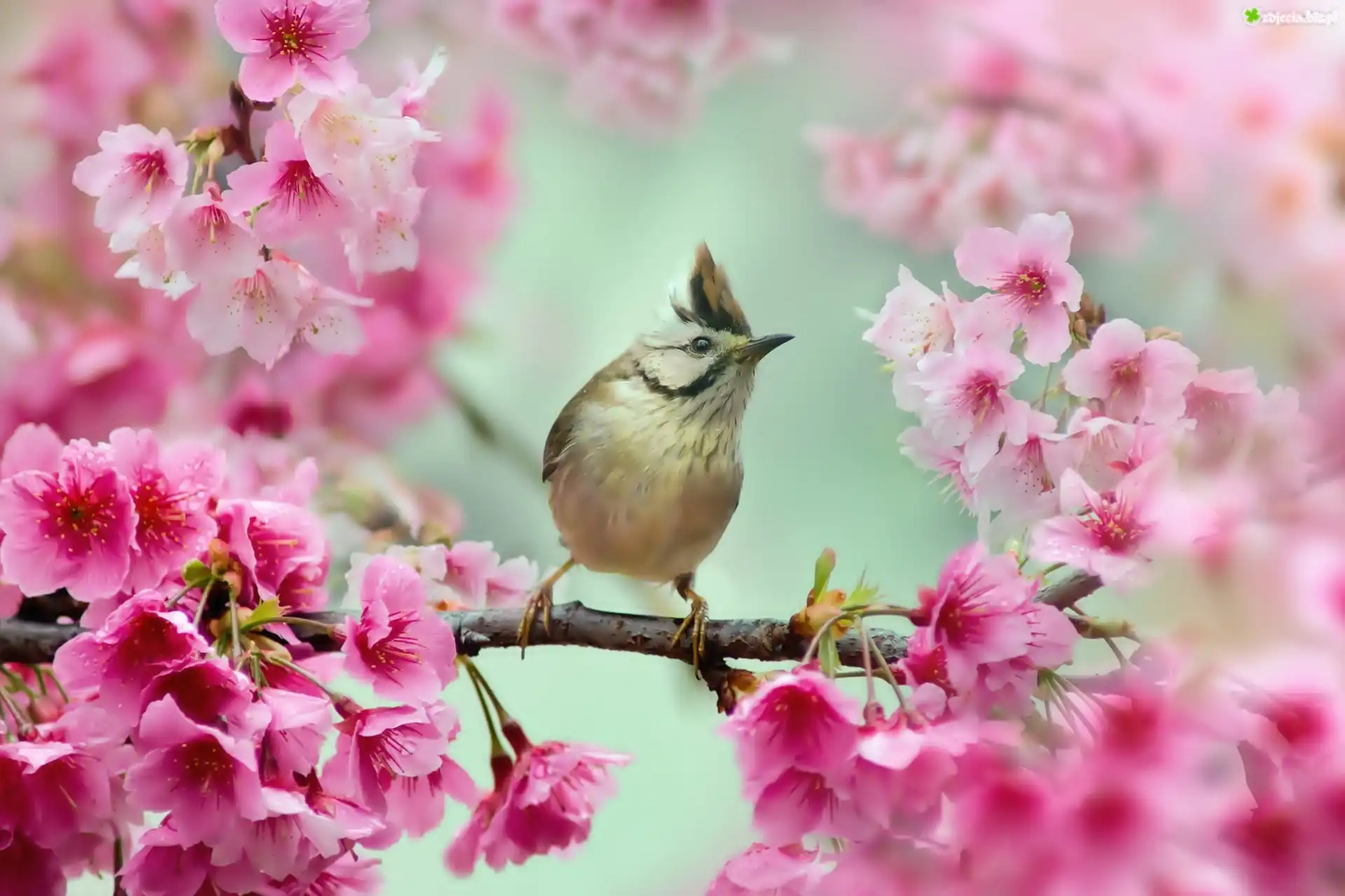 Zdjęcie, Ptak, Czupurnik, Kwiatki