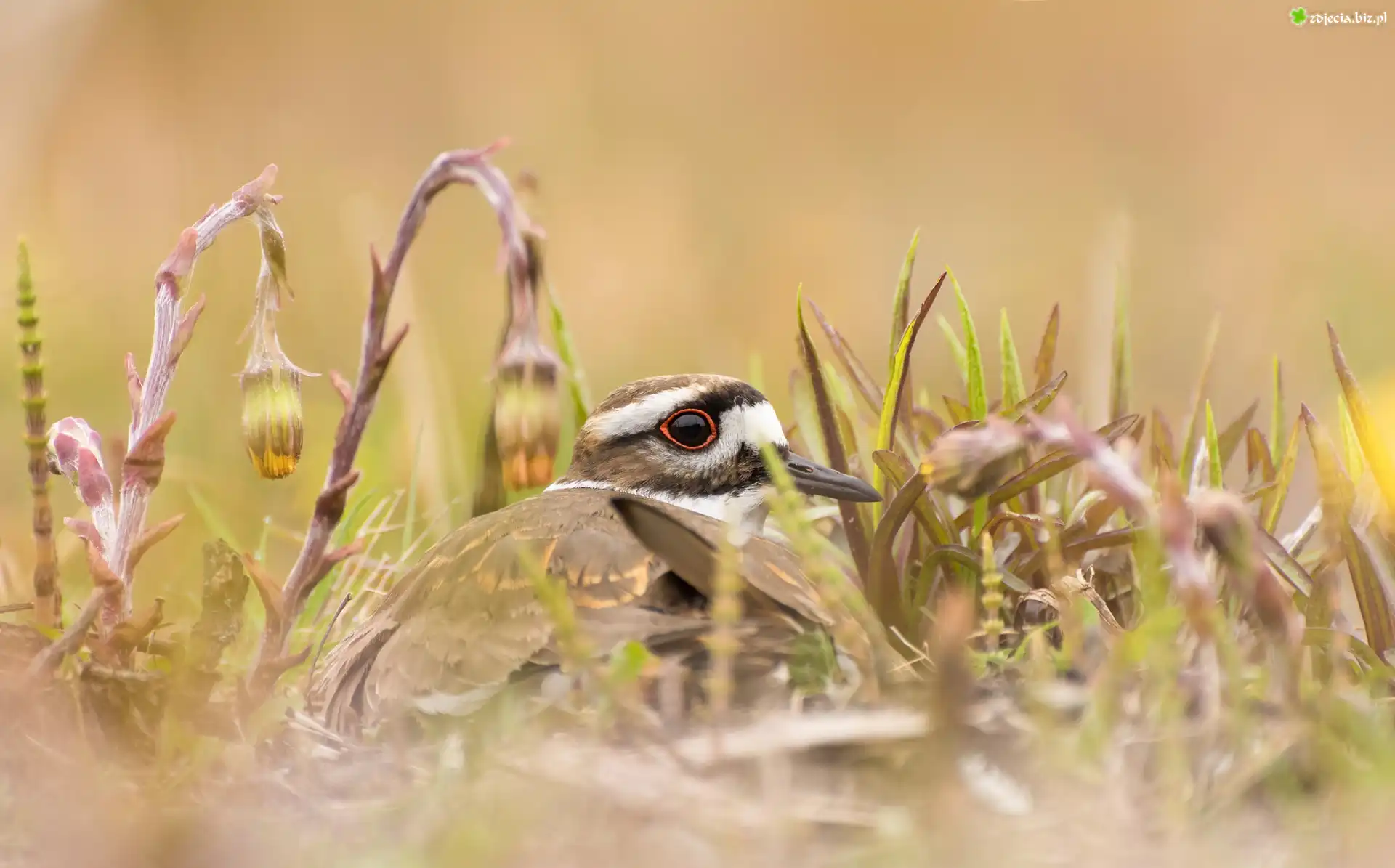 Zdjęcie Ptak, Sieweczka krzykliwa, Kwiaty, Trawa