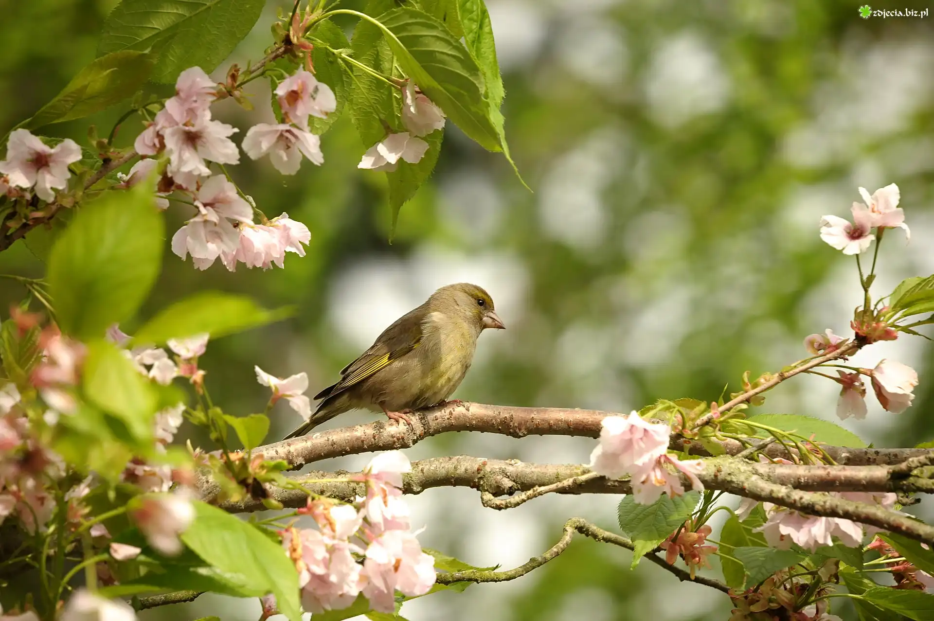 Zdjęcie Ptak, Dzwoniec zwyczajny, Okwiecone, Gałązki